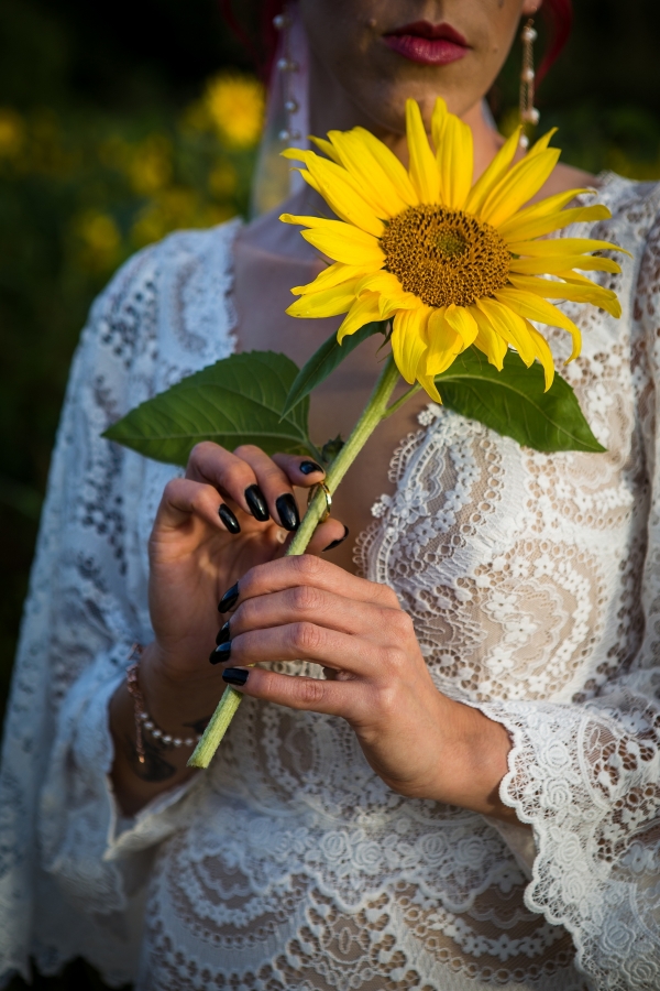 "It was very impromptu and completed just before storm Ellen," reveals Laura. "My dream shoot in the most gorgeous sunflower field in Little Torrington!"