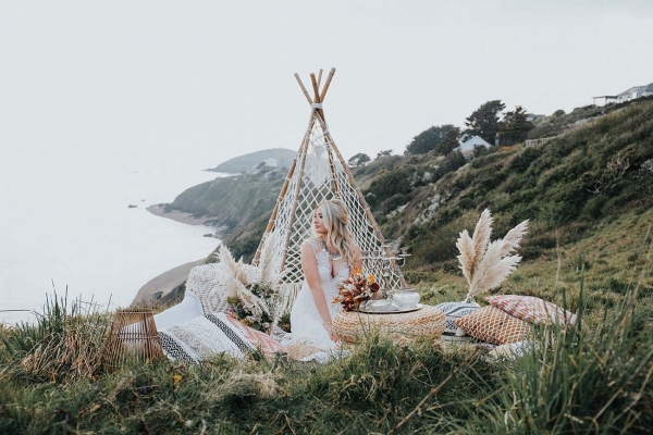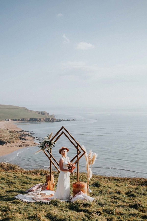 Modern boho vibes and whispers of Morocco abound in this distinctively Devon setting. Natural and locally sourced pieces are key in bringing the relaxed, romantic and achingly hip scene to life: think rattan and soft cushions, pampas grasses and vintage rugs, while an angular ceremony backdrop frames the ocean in dreamily contemporary style.