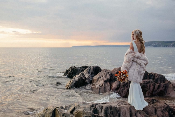 From elevated clifftops and secluded coves to sweeping sandy beaches, places of dreamlike beauty can be found along the coastline of south Devon. Here, Mount Folly Farm, which sits on the clifftops overlooking Bantham Beach, and the sands of Bigbury-on-Sea, with the enchanting sight of Burgh Island and the iconic sea tractor crossing the rippling waters, makes a breathtaking location for a styled shoot.