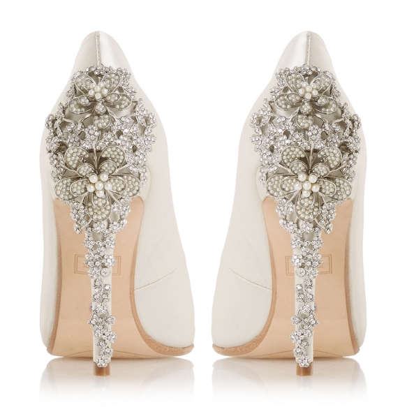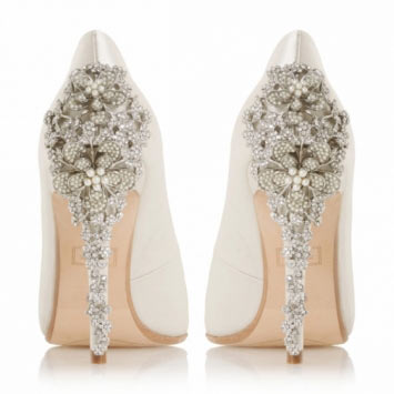 Choosing your gown is undoubtedly one of the best parts of wedding planning... but then comes another amazing part: the all-important shoes. The very foundation of your ensemble, your footwear helps you stand proud as you take your first steps down the aisle. We've been checking out the latest trends in bridal footwear so whether you're an all-out skyscraper heels kinda girl or love a pair of jazzy trainers for dancing, our pick of showstopping shoes are guaranteed to have you feeling fabulous from head to bejewelled toe...BACK TO THE FUTUREIt's all very well putting your best foot forward, but what about the back? This season, we're starting to see some stunning designs on the heel, allowing for a gorgeous glimpse of detail as you walk down the aisle. From embroidered butterflies to sparkling jewels, sometimes it pays to look behind you.
