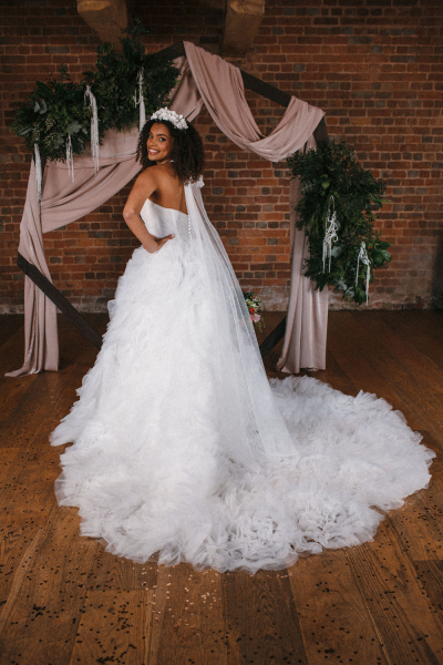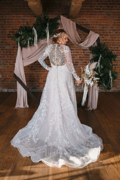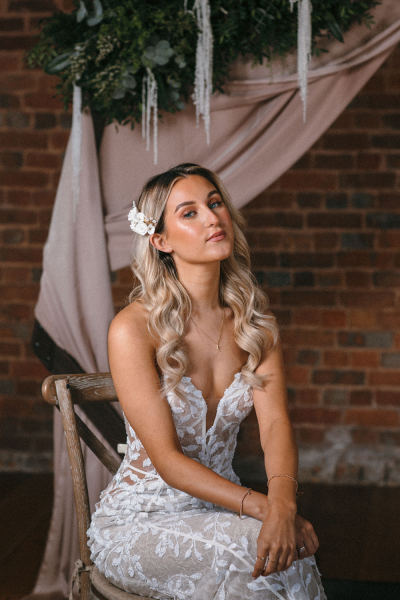 “The colour palette was deliberately neutral to ensure that the focus of the shots remained our beautiful brides, and to allow the atmosphere and rustic charm of the venue to shine, says Becka. “Each bride completed a questionnaire to enable the stylists to create personalised concepts that would suit their wishes, and to build their confidence.”