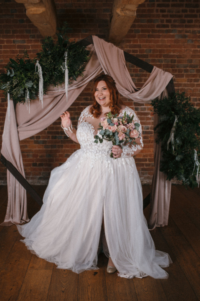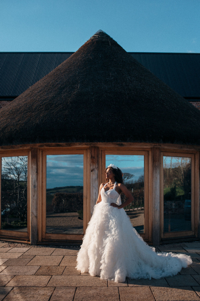 Each woman completed a questionnaire to enable the talented team of 20 female business owners within the wedding industry to create personalised concepts to suit each individual’s wishes and build their confidence. The local team of creatives meant the shoot was also a celebration of Devon’s wedding industry, featuring locally grown blooms and handcrafted porcelain accessories through to creatives ranging from hair stylists and make-up artists to caterers.