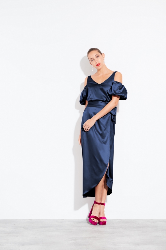 Cowl necklines, draping, and off-the-shoulder styles are all the rage, while halternecks ' and their close cousin, the racer-back dress ' are also a super-stylish choice. Pair a trending neckline with satin or velvet for extra style points.