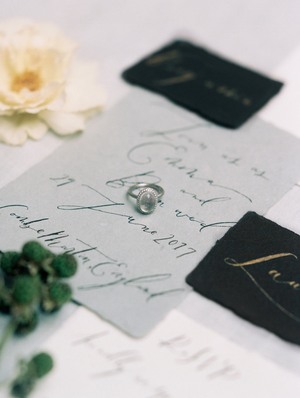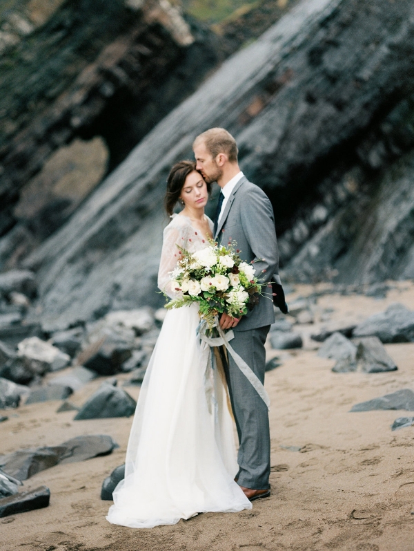 The stationery spectacularly sets the theme through muted, oceanic shades and stunning calligraphy while adding a sense of whimsy that continues in everything from the lace bridal top to the glorious vintage esque jewellery, which all combines to create an exquisite representation of pared-back romance at a sublimely unspoilt setting.