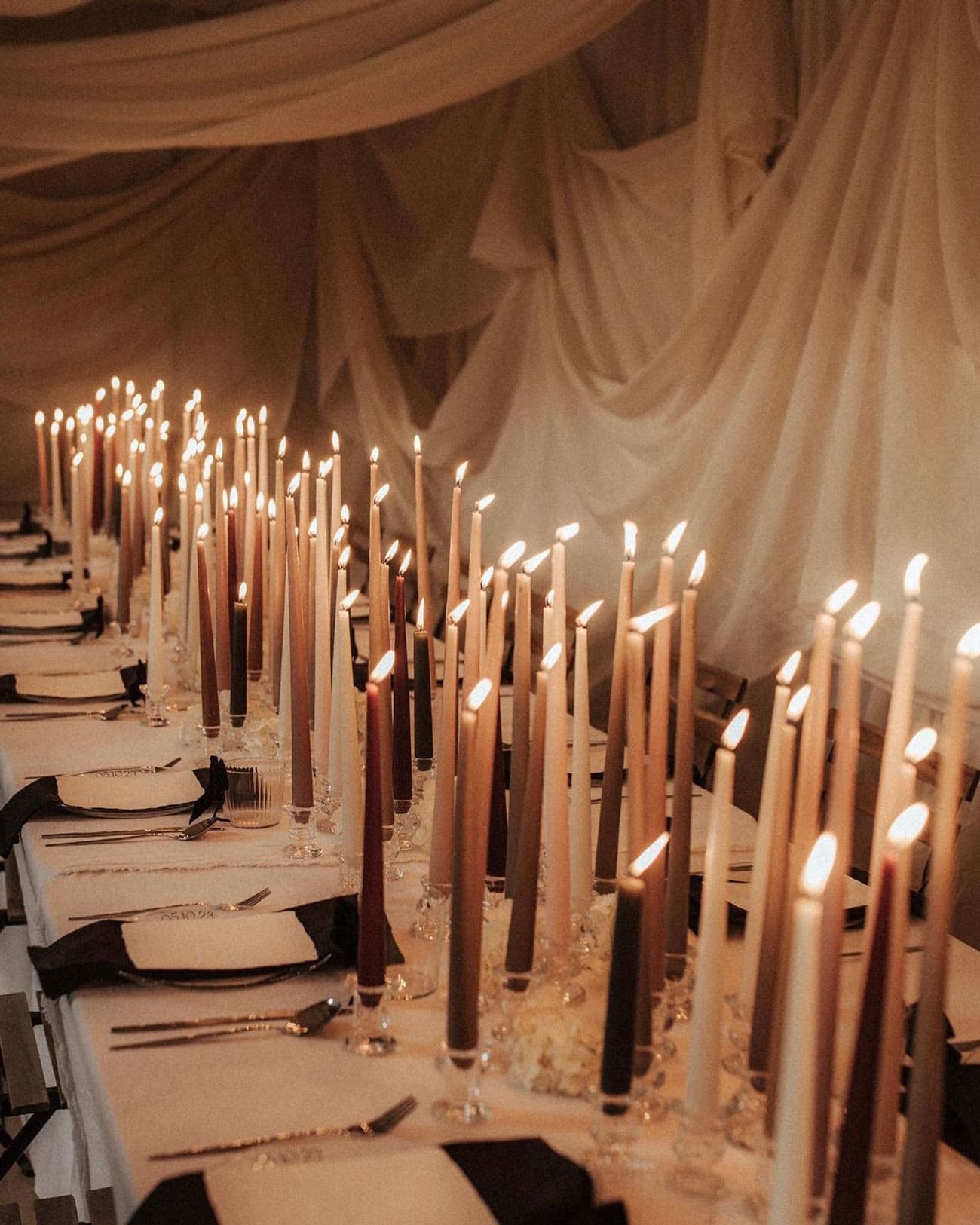 If you’re keen to take a trending scheme and make it your own, Rebecca and Nikki have noted a few emerging aesthetics that may help to inspire and inform your choices. “While classic colour palettes like black and white or ivory and green remain timeless favourites, new trends are constantly emerging and even the concept of timelessness is a trend in itself!” reports Rebecca, who has seen a particular surge in earthy tones. “Terracotta, sage green and burnt orange evoke a sense of natural beauty and rustic charm, and this is very much coming back. Think al fresco Tuscan dinner set-ups!” she observes.