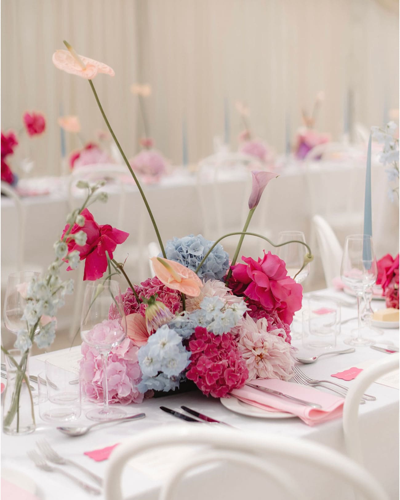 Before settling upon your scheme, make sure you think about the meaning and symbolism, as well as the look and feel. “Incorporating colours that represent the couple’s cultural backgrounds can add a unique and meaningful touch,” says Rebecca, who also encourages couples to envisage their wedding on a thematic level. “The colours should complement and enhance the overall theme, such as vintage Hollywood glamour or bohemian garden party,” she advises. “Gone are the days of Cadbury purple or single colour schemes, which can end up looking dated.”