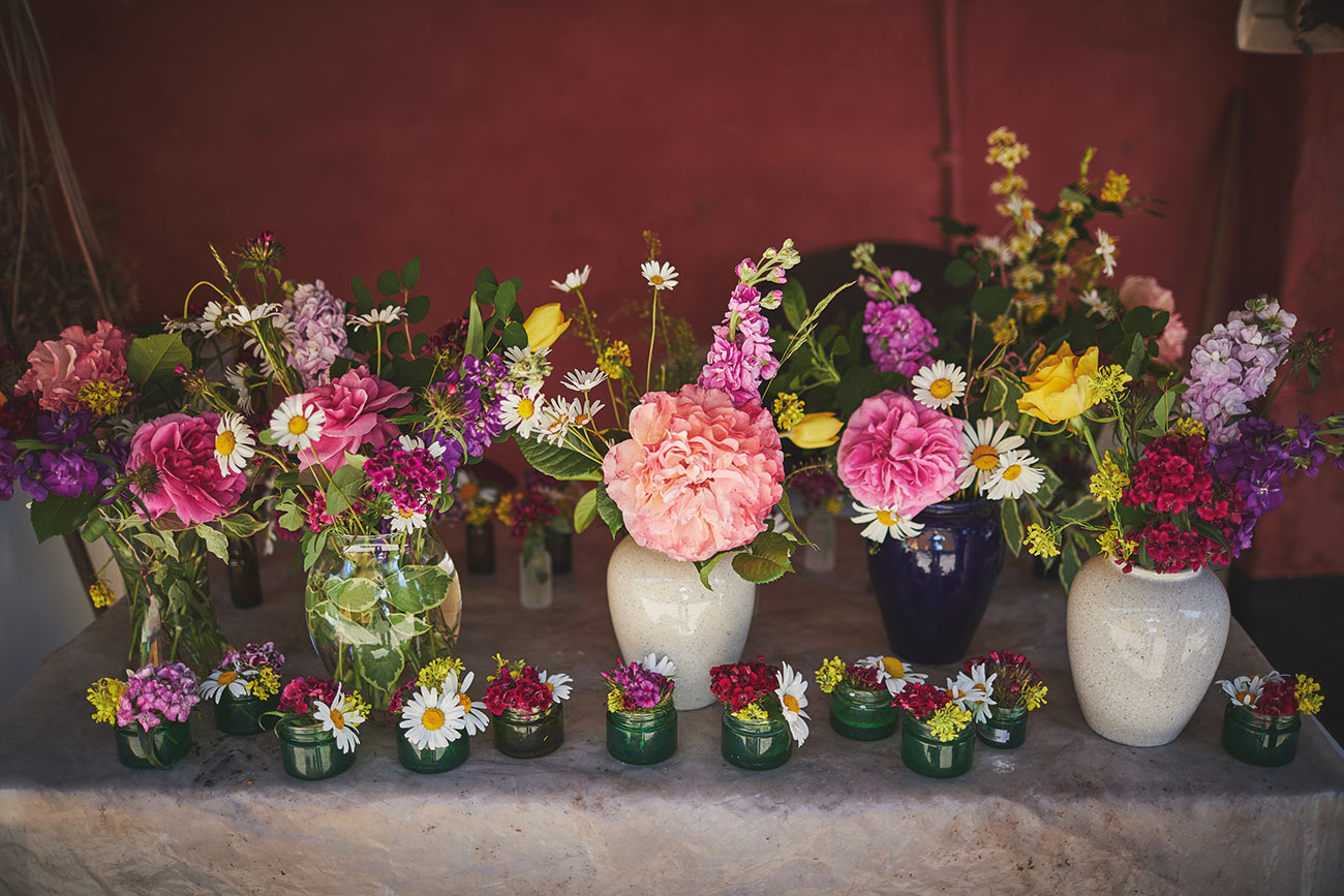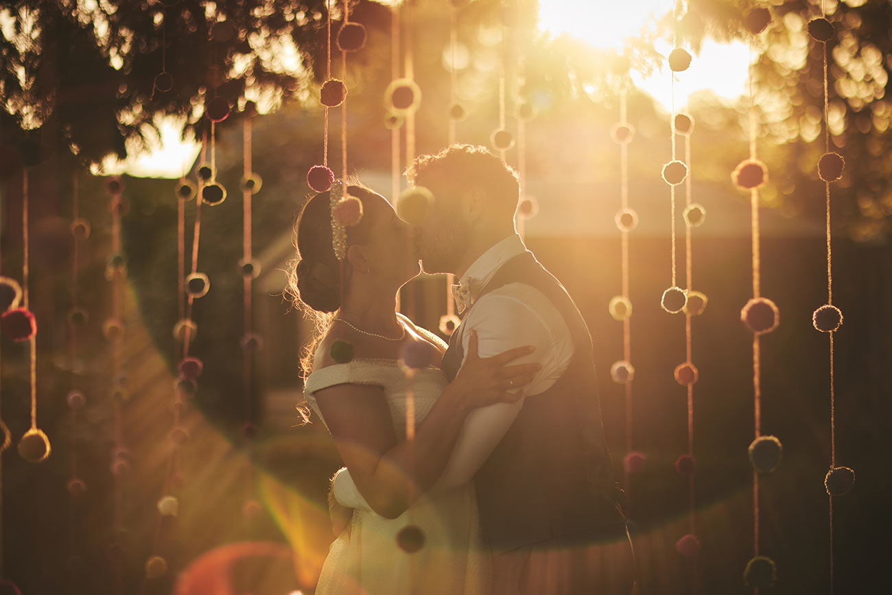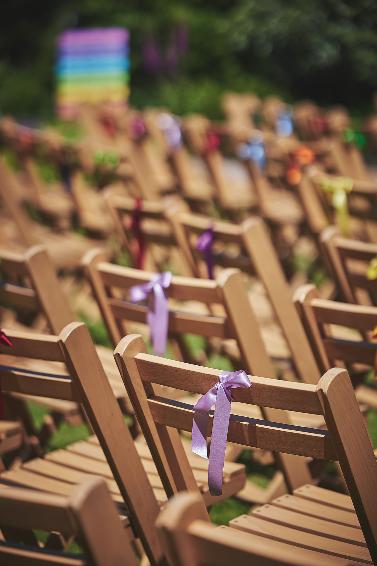 The picturesque setting inspired their bright and beautiful styling. “The garden is so full of colour, I wanted to reflect that in the rest of the day,” says Verity of the rainbow of colours that carried from the flowers and trailing ribbons of the bouquets to the signage and stationery. “We also made and hung hundreds of pom-poms from a large tree in the centre of the garden, and my final colourful DIY dream come true was draping ribbons from the marquee roof.”-