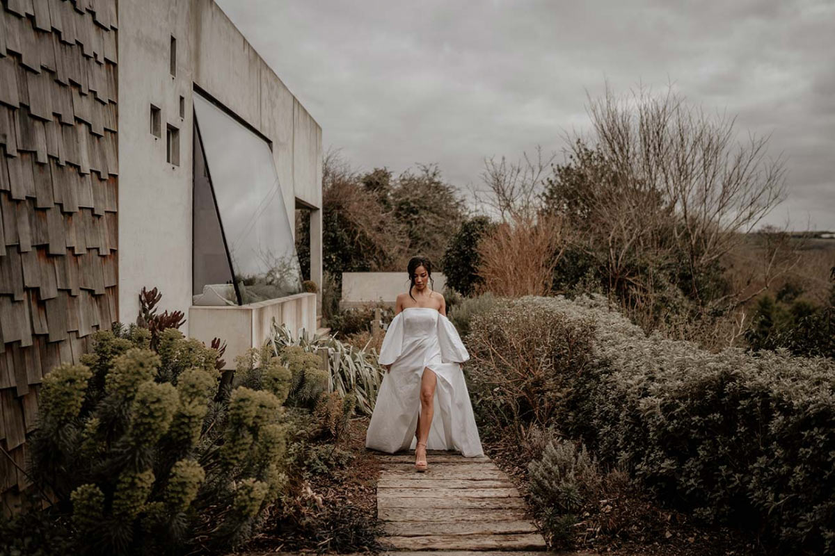 Then there's The Hide, a sleek, modern retreat for a honeymoon, its bold architecture, clean lines and concrete proving inspiring for photographer Carla Radmore-Towill of The Unbridled: 'The concrete makes a real architectural statement and was really important to the concept of the shoot,' she explains. 'We wanted to strip things back and really focus on what marriage is about.' 'And work with the natural textures, clean lines and bold architecture, as well as the botanical grounds.'