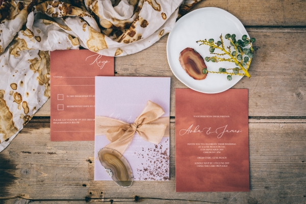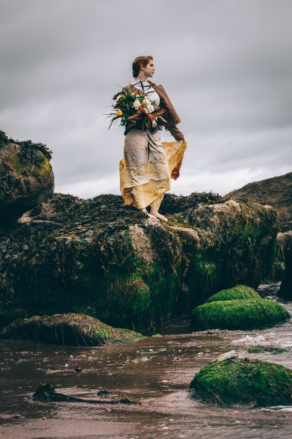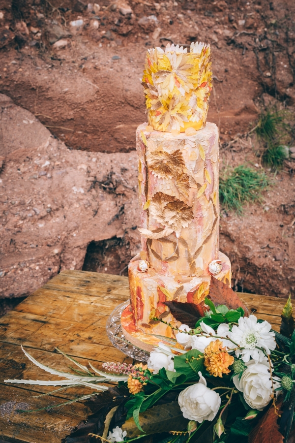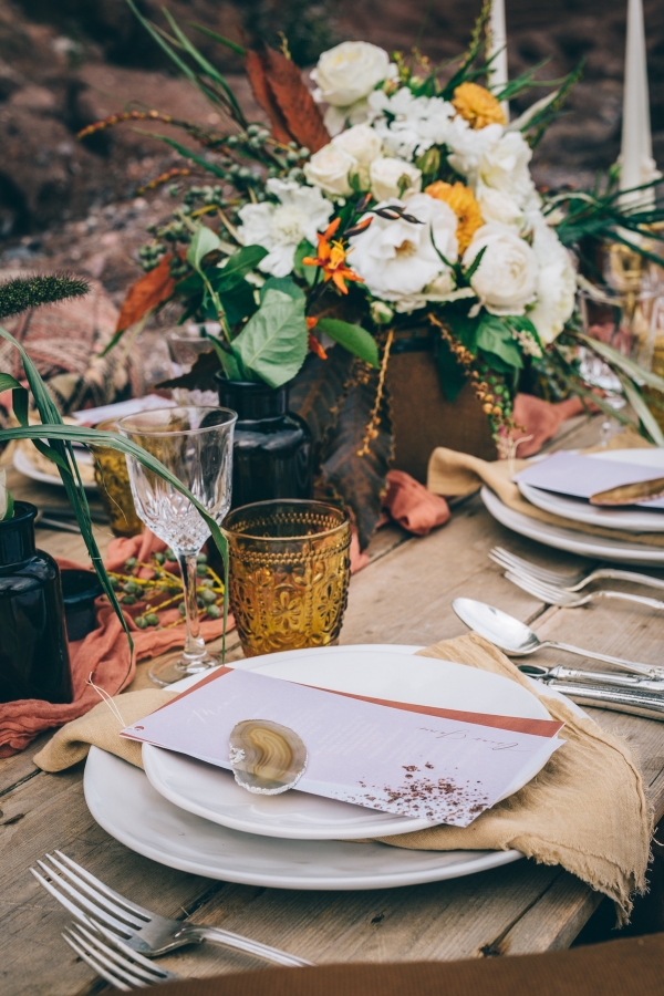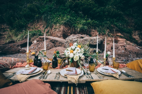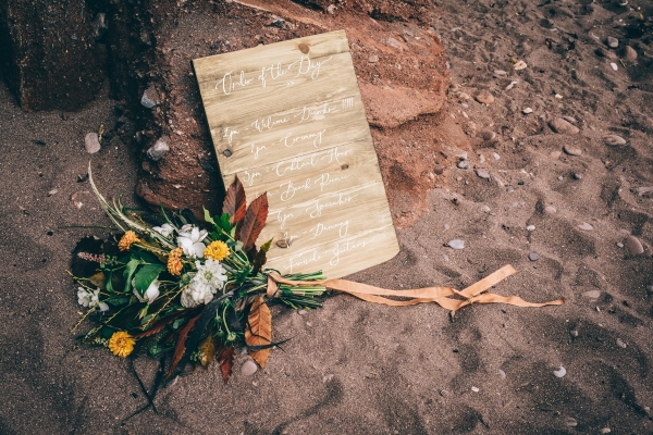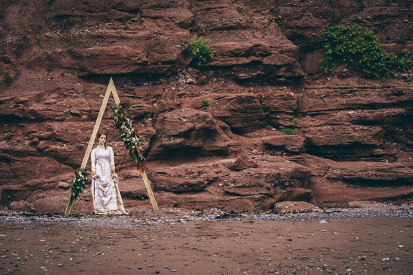 "The inspiration was definitely those red and burnt orange colours within the landscape itself," says Nikki from Knots & Kisses, who organised the shoot. "The stunning dramatic skies and coastline showcase just how amazing an outdoor wedding in Devon could be."