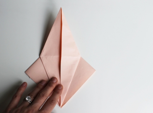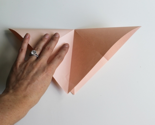 5. Follow the same step on the right hand side, folding the right hand point in on itself towards the bottom point.