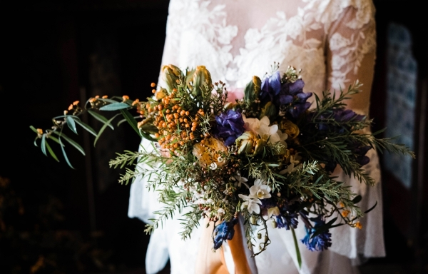"There is a fine balance in these pictures between wealthy opulence and something charmingly restrained," says florist Inky of Inky & Grace, which aimed to capture the blend of richness mixed with austerity.