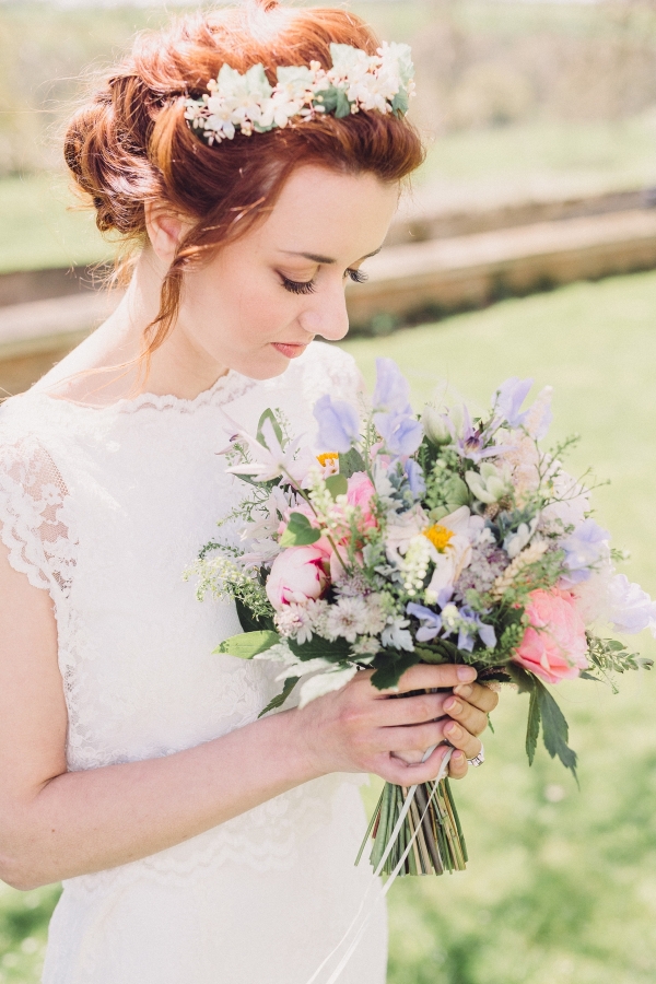 "Published 70 years after its creation, the collection of seasonal observations, poetry and pictures of birds, plants, and insects had the nostalgic charm of a vanished world. Edith Holden would go out each morning and document what she saw around her in the fields, hedgerows and trees, as the seasons changed. I wanted to do the same for this shoot. I wanted to use very soft, natural flowers that you would find growing locally. To keep the shoot as natural, soft and romantic as possible, but with a modern edge."