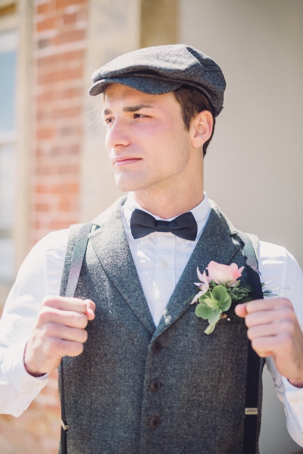In a nod to the Edwardian tradition of placing utmost importance on the gown, the bride is dressed in vintage-inspired lace, the strong silhouette paired with a bouquet of flowers from an English country garden. Embracing fashion's most romantic period, the bride exudes a refined gracefulness, poised to take her vows alongside her dashing groom.