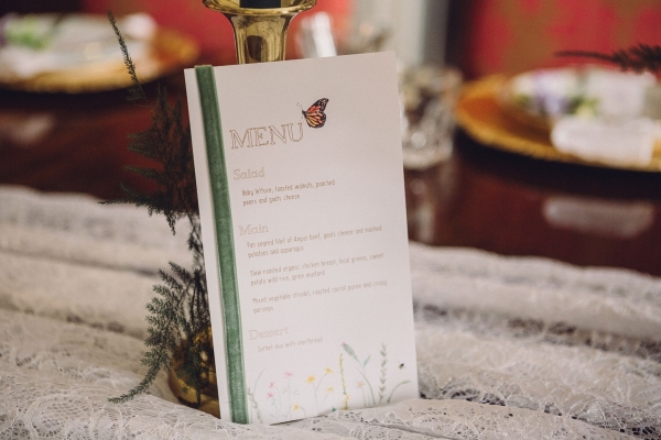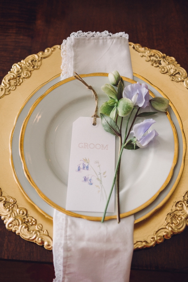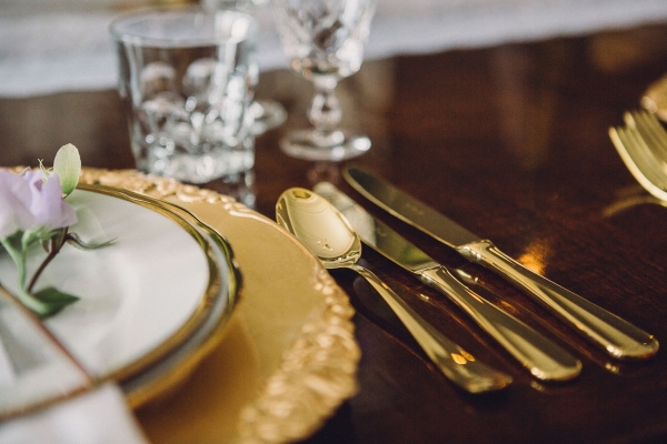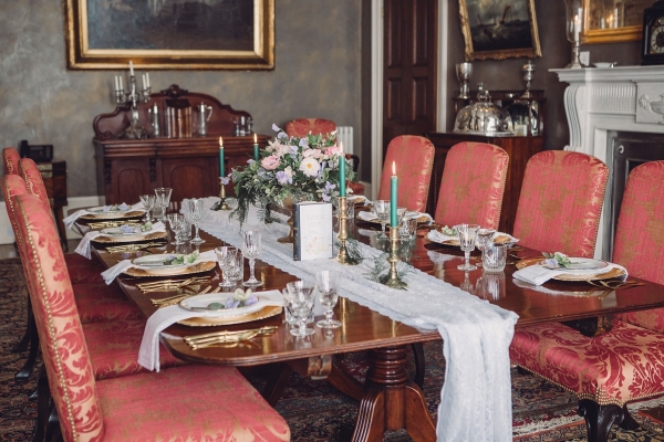 Edwardian in its inspiration, the initial look is one of class and sophistication. But glance at the details and you'll see a gentle prettiness. Tiny fresh flowers lighten the heavy-set styling; a lace runner adorns the table, while ornate plates and golden cutlery sit aside crystal glasses and chunky antique candlesticks.