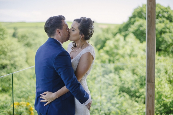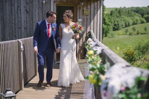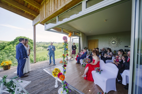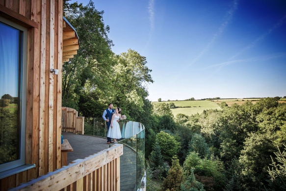 Decorated with flowers, the wooden walkway between the Tree House and The Nest made for a romantic aisle and we married before the glass balustrade, with miles of woodland as the backdrop.