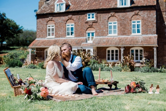 We spent the rest of the afternoon being photographed at the venue, a local village and the beach. We had so much fun running around the beach barefoot, then we sat by the fire and drank champagne, listening to old vinyl records, while we waited for our wonderful roasted butternut squash. After dinner, we decided to ditch the champagne and have some cake - a beautiful vegan jam sponge cake - and get the kettle on!