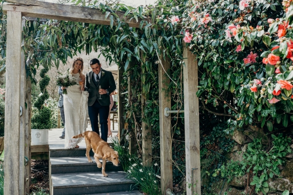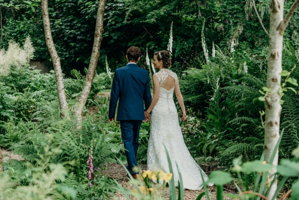The day was really relaxed. I remember sitting outside in the rain making a flower crown for myself in the morning, then getting ready. I wore a beautiful bespoke dress, while John wore a Gresham Blake suit and our son wore a little waistcoat to match. Although I planned to make my own bouquet, John wouldn't hear of it! I adored my bouquet from The Garden Gate Flower Company, it was full of my favourite flowers.
