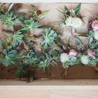 Our wedding favours - sempervivums home-grown by my Dad - nestled in a rustic crate at one end of the marquee. Their fancy Latinate name means 'forever living' - an apt sentiment, we hoped, with which to mark the beginning of our marriage.