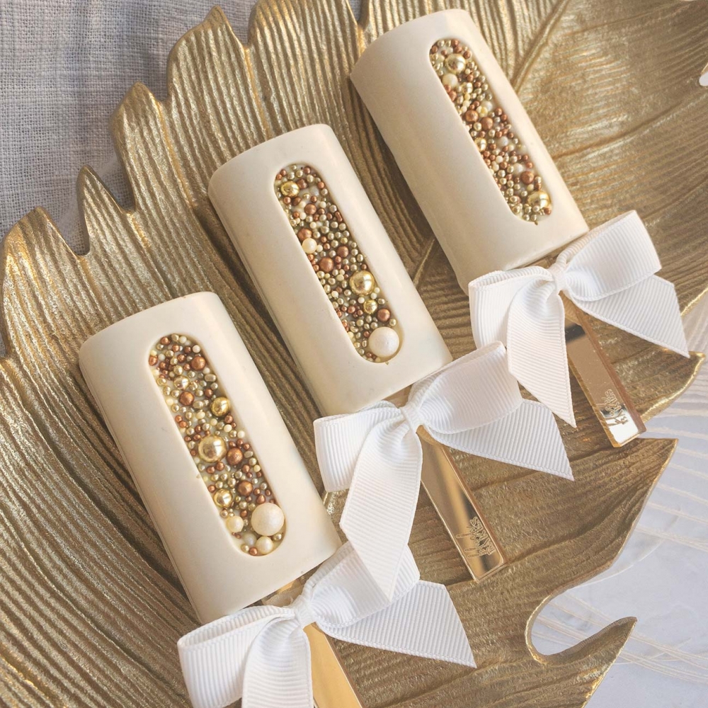 Charlotte Johns can cater to your every favour requirement, whether you fancy beautiful biscuits, mini smash hearts, or lip-smacking cakesicles designed to your specifications. Each one can be created to mirror your colour scheme or theme, with the option of being boxed or unboxed, and nametags attached as place settings. Picture luxe cookies and bite-sized cakes adorned with dried flowers, feathers, hand-painted details, charms and exquisite calligraphy ' or even a cakesicle stand or tower for a real show-stopping centrepiece. With bakes this brilliantly artistic, they're (almost) too good-looking to eat...
