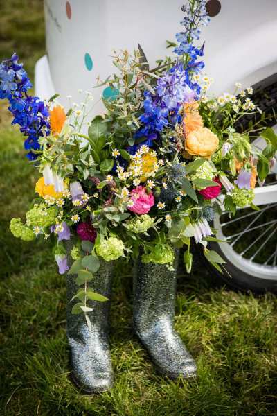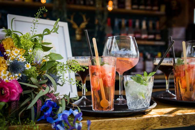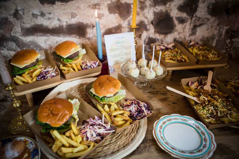 Befitting the festival feel, a relaxed menu featuring the likes of slow-cooked barbecue pulled chicken with loaded french fries and mac and cheese allows a mix and match approach to the wedding feast, rounded off with cake pops, mini wedding cakes and gelato.