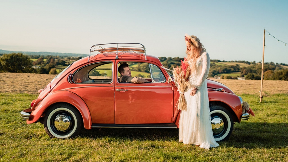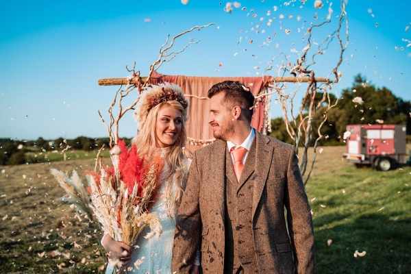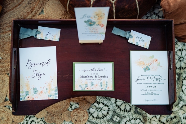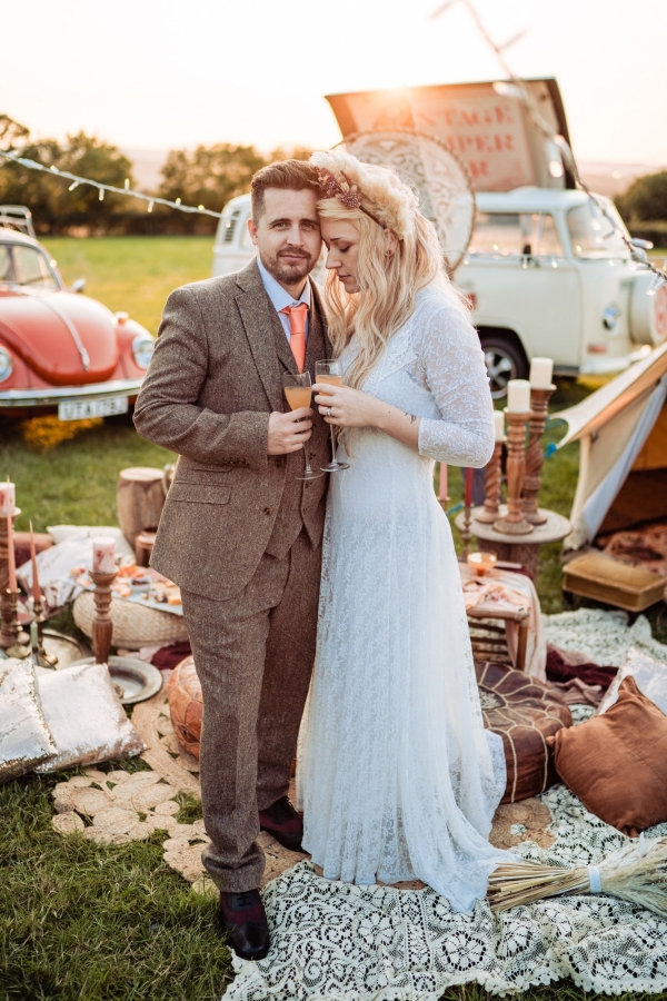 "We wanted to feature a couple who had to postpone their wedding to 2021 and we struck gold with a gorgeous couple called Lou & Matt. They loved every minute of it as much as we did. It was such a magical day and we loved putting this shoot together with the help of some seriously talented wedding suppliers in the South West, overlooking Exmouth Estuary," says Naomi Brown of Vintage Camper Booths, who came up with the concept and styling of this uber inspired shoot.