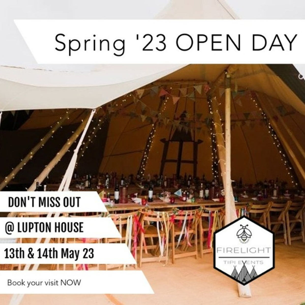 Lupton House will be the place to be over the weekend of Saturday 13th (10am-4pm) & Sunday 14th May (10am-12noon) for Firelight Tipi Events' Spring Open Day.