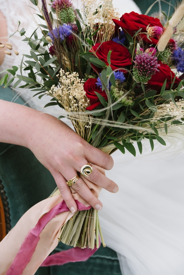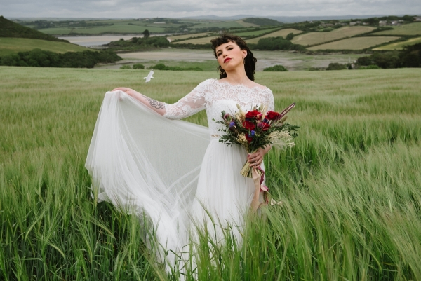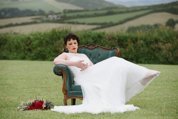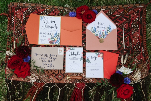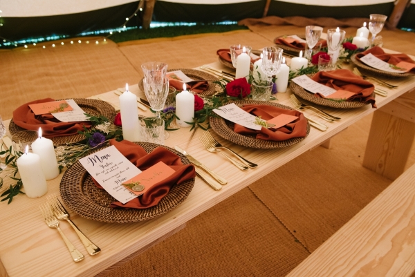 A tipi deep in the Cornish countryside sets the scene for a wildly romantic wedding where an abundance of rich colours and wild flowers meet gilded jewels and lavishly dressed feasting tables