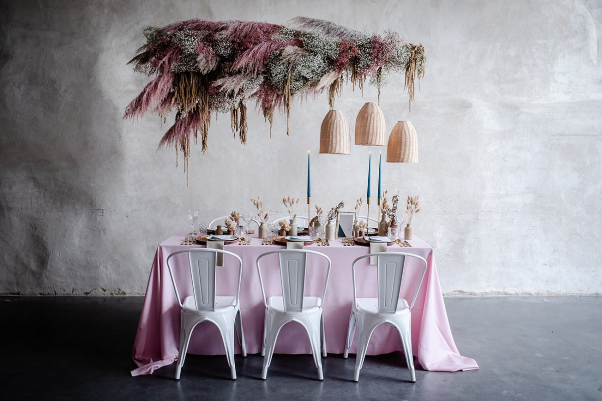 'There's lots more pink popping up, but definitely more of a dusky tone paired with sage greens, pops of black or dried florals. I love this trend and the biggest benefit is that it doesn't need to feel 'girly'. There are also pops of yellows emerging within wedding designs and I think we will begin to see more of this into 2022 matched with other more pared-back colours. My favourite ever-rising trend is a neutral palette; think mix-and-match champagne bridesmaids' dresses, layered linens and fabrics in muted tones and botanicals in deep caramel tones.'