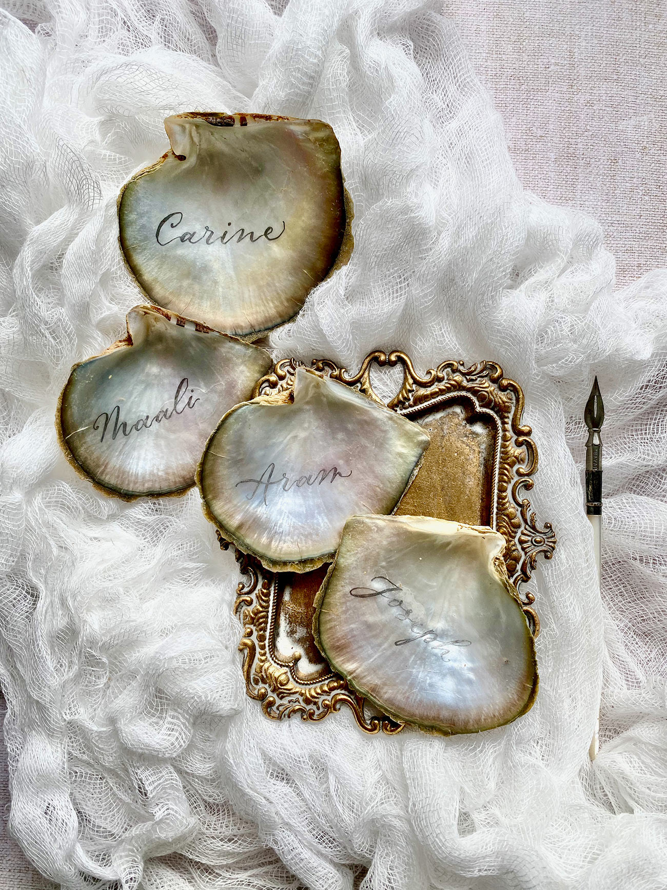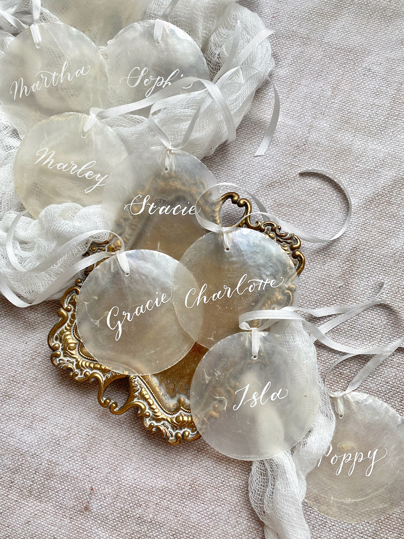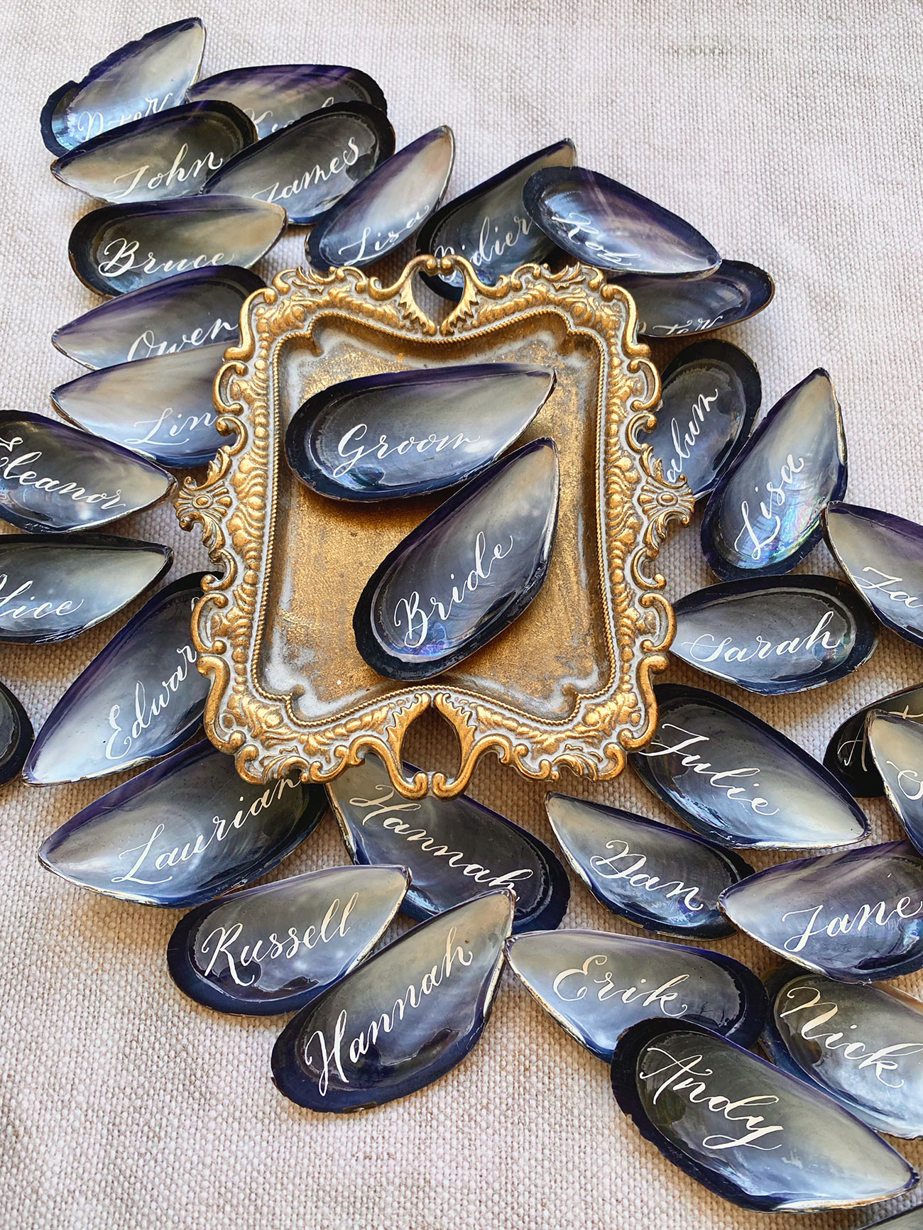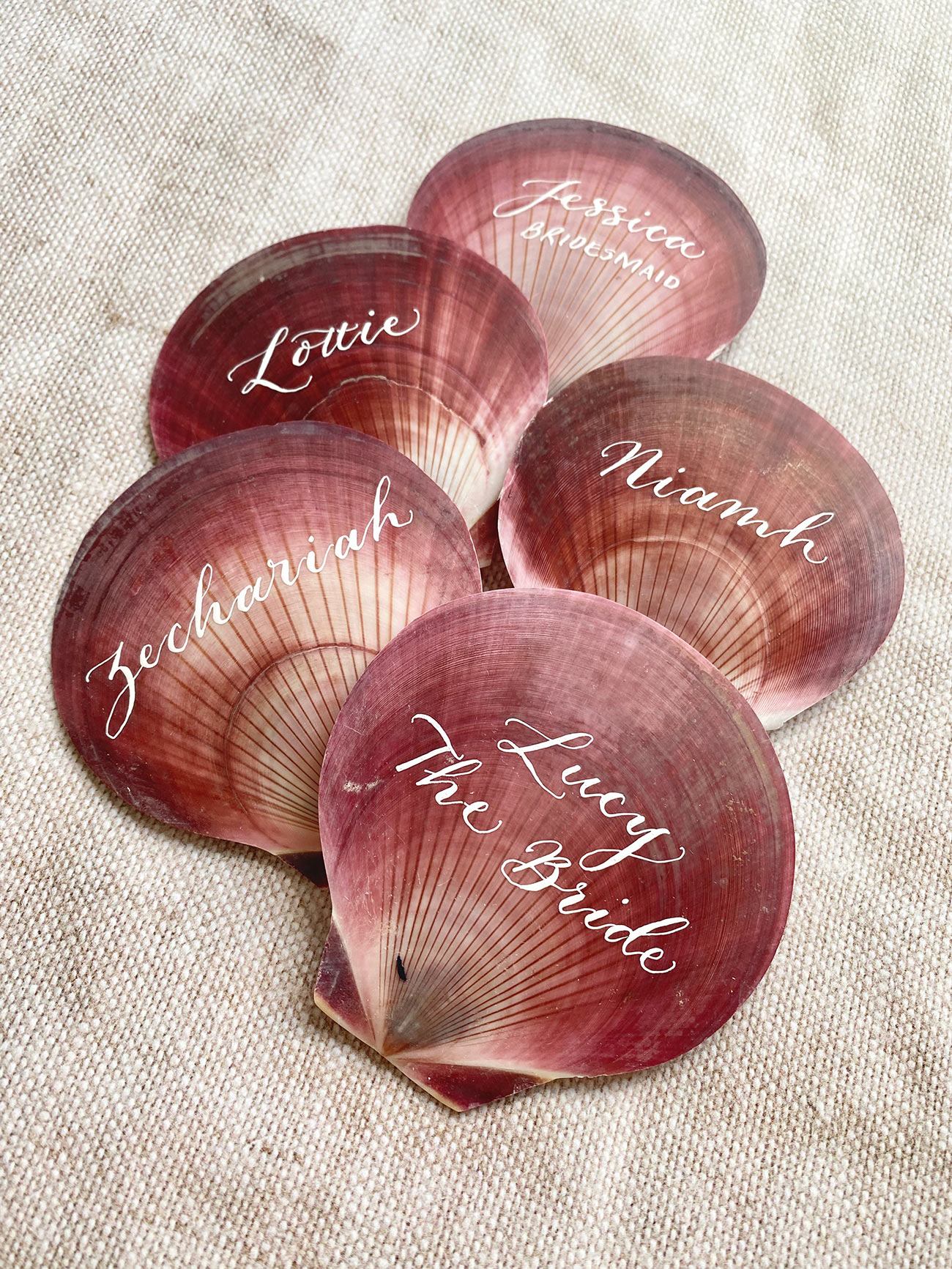 As an eco-luxe nod to the stunning coastline, we absolutely adore these shell place names from Devon company, The Whole Caboodle. Choose from a range of shells such as scallops, mussels or even capiz fragments, which will be decorated with names in beautiful hand-drawn calligraphy – a thoughtful and style-led addition to your tablescapes, which will also double as a so-sweet and natural wedding favour.