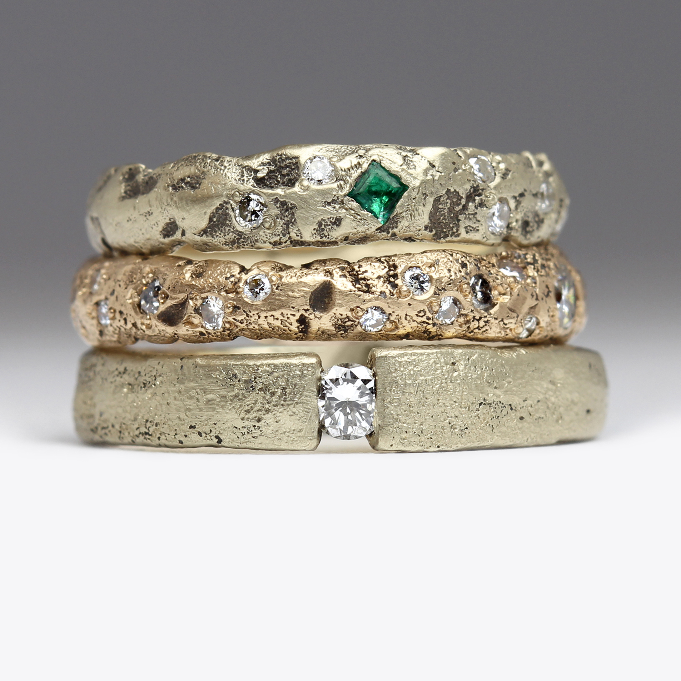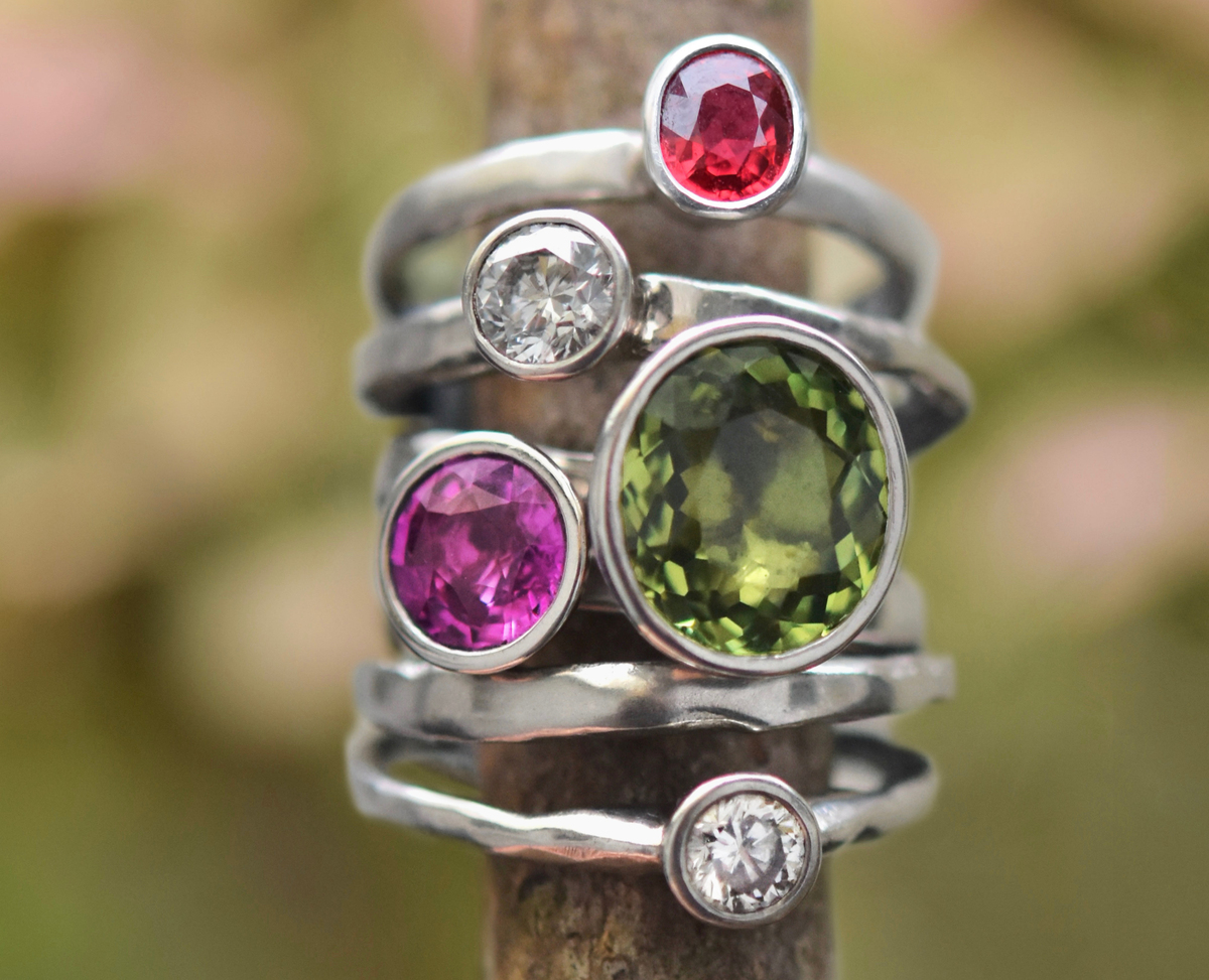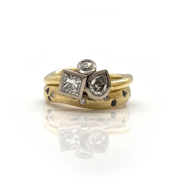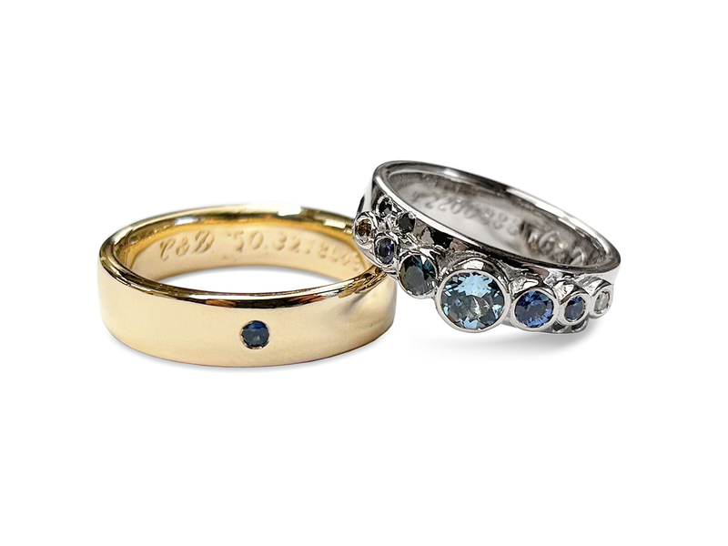 From classic round, pear, heart and princess shaped stones to modern designs featuring multiple shapes and colours, the way your stones are sized, cut and set can ensure a beautifully bespoke set of rings.