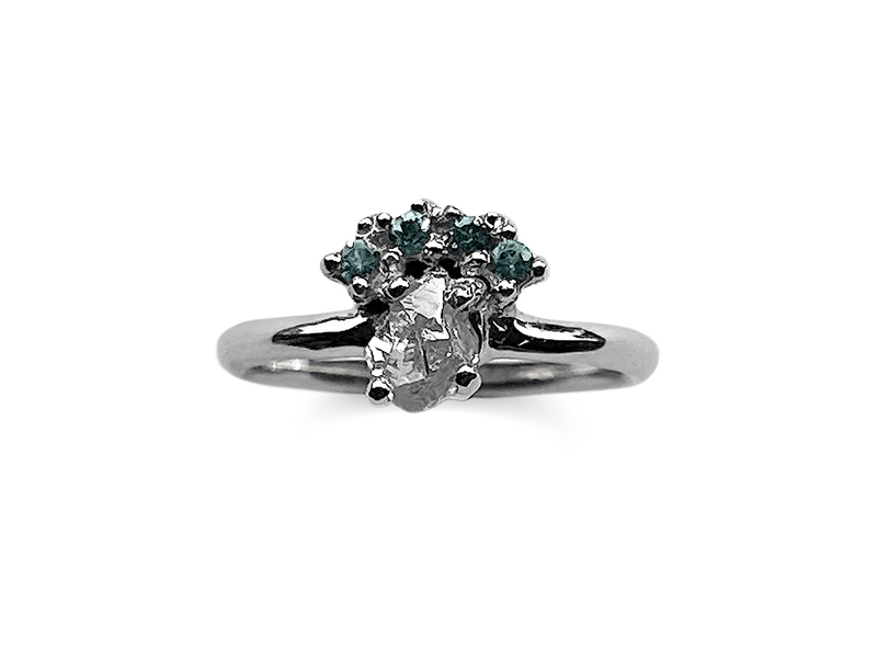 You might have a favourite shade in mind or be swayed toward the current colour trends. Bright and dazzling stones in jewel tones are all the rage, specifically sapphires, which “come in almost every colour and shape, from raw crystal forms to perfect cuts”, notes Jamila. “They have been a real hit in recent years, with ethical gemstone mines producing bold and pastel varieties (yellows, blues, greens, pinks, purples), bi-coloured and parti sapphires heading the trends,” reports Corrinne. “These are fabulous alternatives as the stone strength is hardy and offers up a full spectrum of colours and cuts. My latest collection has many cuts and coloured sapphires for a very special ring with an androgynous style for classic timeless design choice.”