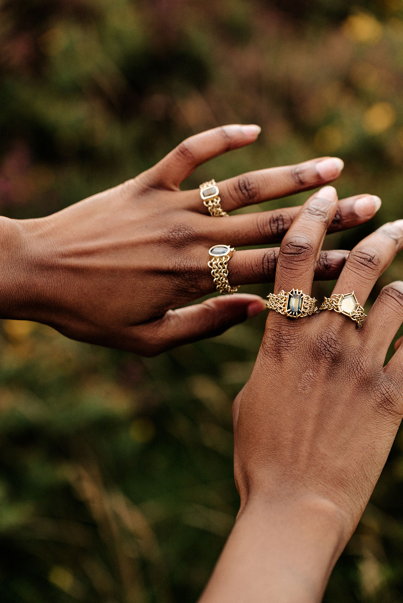 One of the most important factors is the durability of your bands. “Our advice is to think about your lifestyle and how you want to wear your ring,” says Jamila. “Our rings are designed to be worn all the time, for the rest of your life. By choosing hard stones, you will be sure they will stand the test of time. Many gemstones can become dull or even chipped with time because they are soft or brittle.”