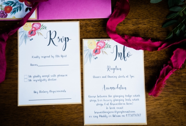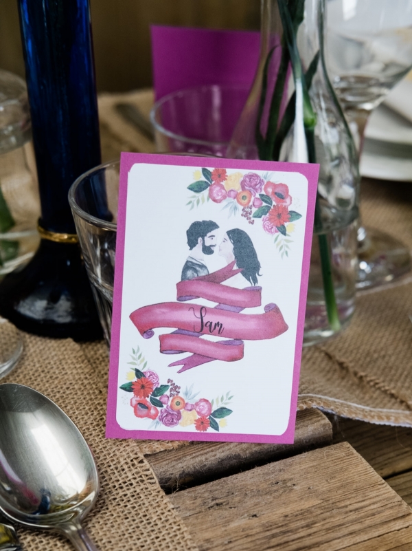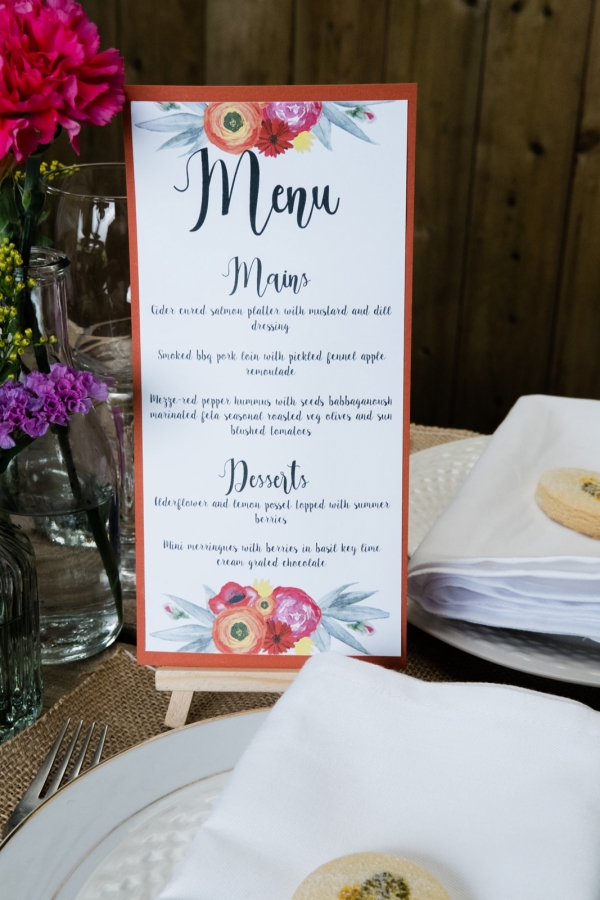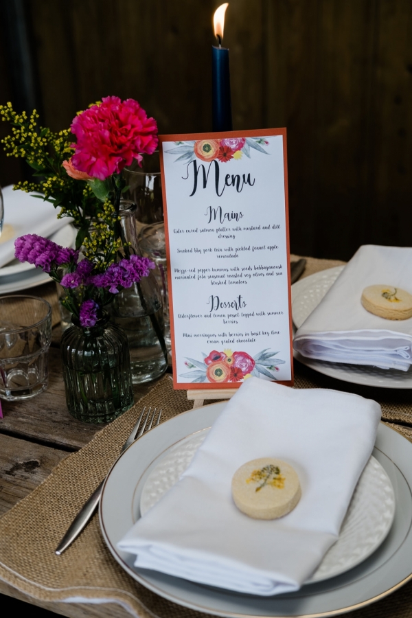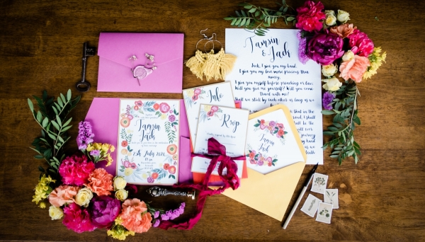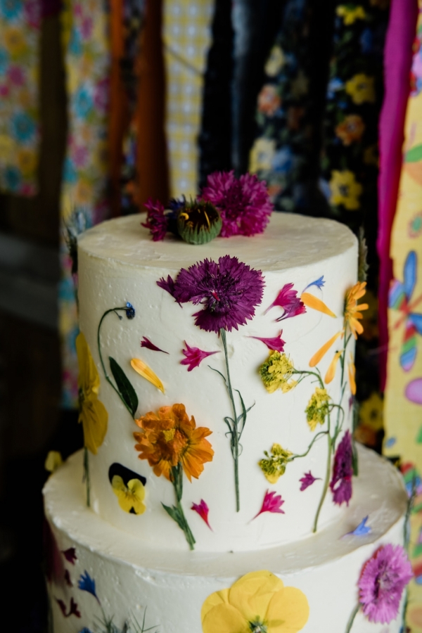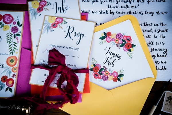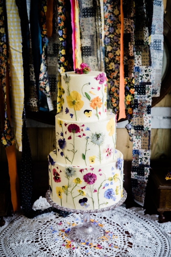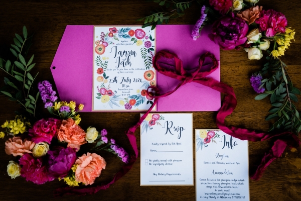 Meanwhile, a reception space bedecked with vibrant blooms, quirky stationery and natural touches features a floral masterpiece for a cake, which makes an eye-catching centrepiece and cleverly echoes the wild outdoors.
