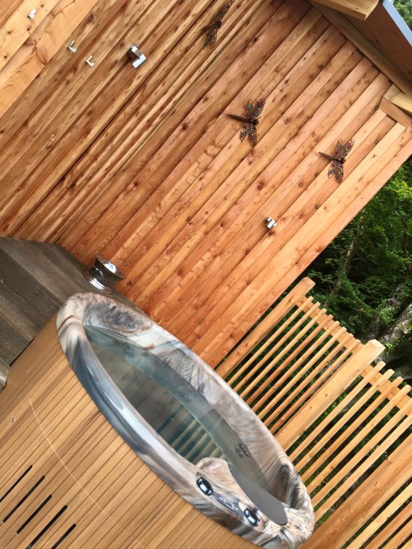 The five-star hideaway boasts two en suite bedrooms, an open-plan lounge and diner, and a designer Italian kitchen. It's all sensuous wooden curves and clean lines but with a touch of modern sophistication and high-tech facilities such as a Sonos music system, 50in 4k TV with FreeSat and Netflix, iPads and a spectacular freestanding William Holland copper bath and private hot tub on the floating balcony.