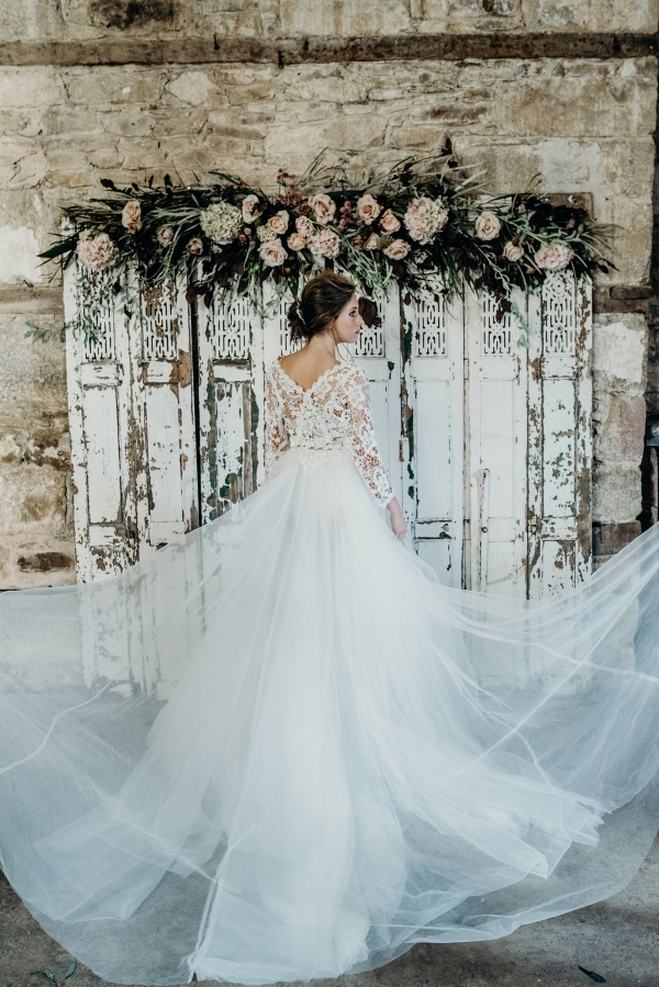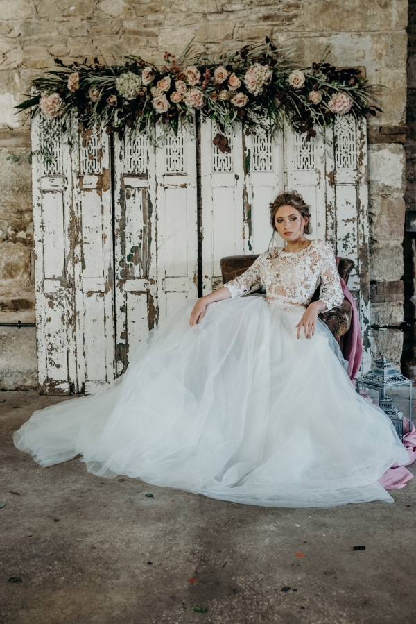 Silk runners, soft fabrics and lavish veils complete the sumptuous mood, with the additions of rustic shutters and a bare plaster-inspired cake adding further industrial elements. "Finishing touches of scattered petals mean everything just feels like it has fallen there," says Nikki of this beguiling fusion.