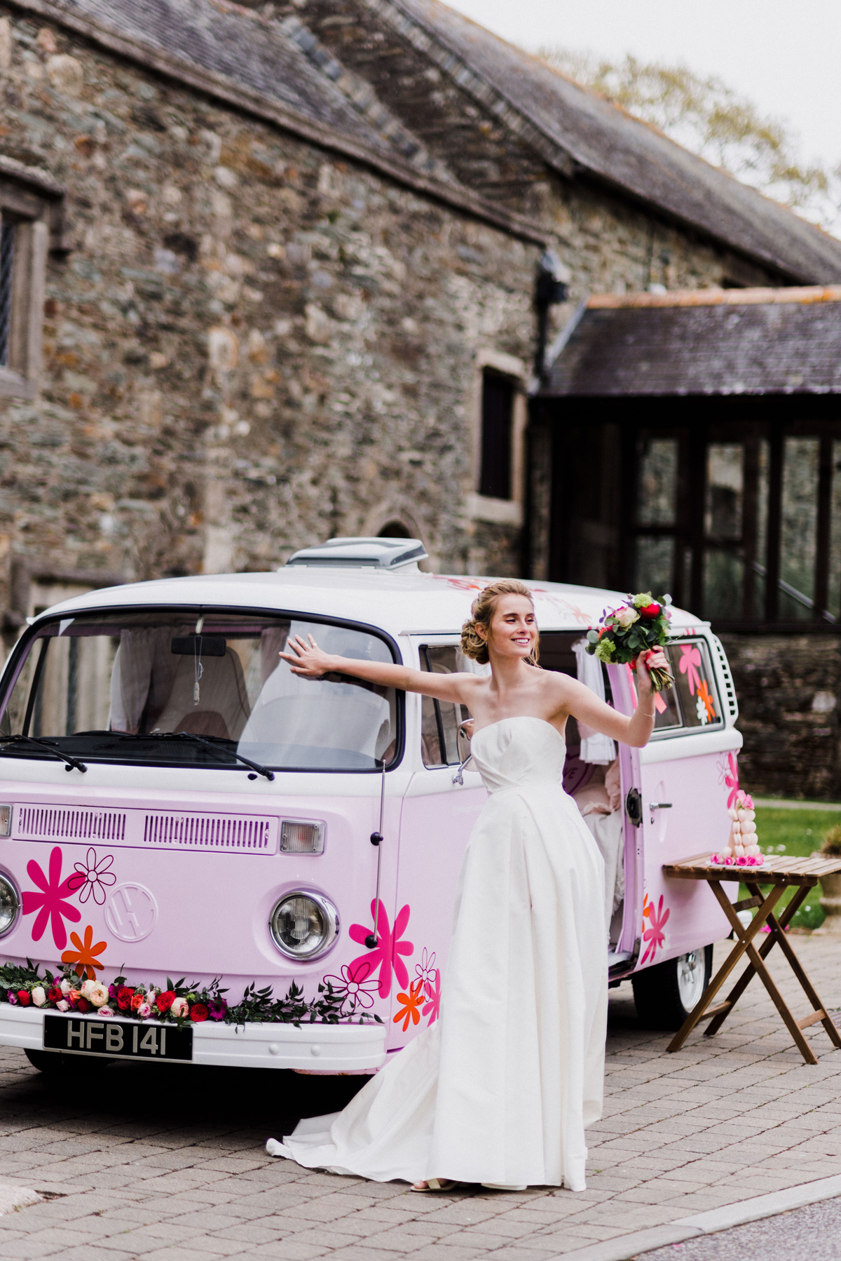 When it comes to choosing your suppliers and activities at a wedding, it’s not just about the look; bringing the right vibe to a wedding is just as important. We love a wedding photo booth as it combines a fun activity for guests, while also producing some truly memorable photos, as well as a brilliant talking point – and Margot Camper will definitely be talked about long after the wedding is over! With her bright flowers and pink facade, the 1970s vintage VW camper will fit right in for anyone planning a festival wedding, while being kitted out with a Canon DSLR means the picture quality of the images is superb too.