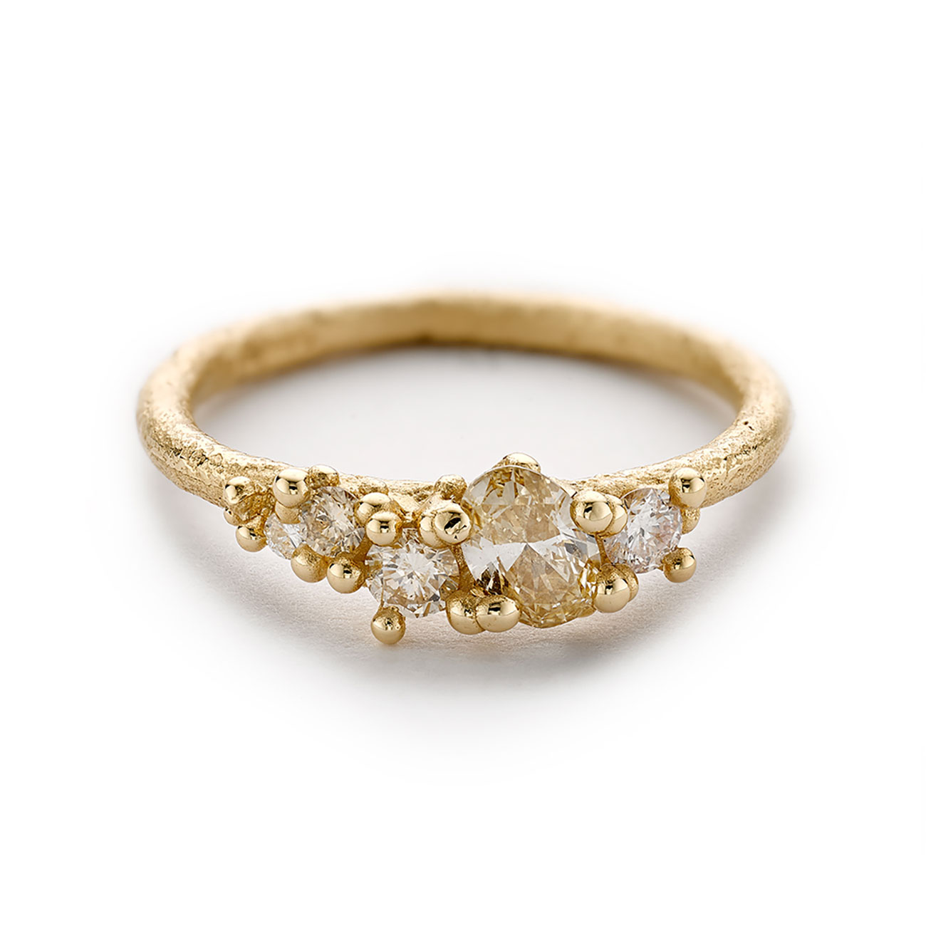 The Ruth Tomlinson collection is a favourite at the gallery. Based in London’s historic jewellery district of Hatton Garden, the British designer is celebrated for her exquisite signature style and unique approach, marrying fine craftsmanship with stunning artistry. Often drawing inspiration from the natural world, folklore and her travels, each piece is a lovingly handcrafted work of art, marked by her signature granular intricacies and ethereal character. With sustainability being key to Ruth’s ethos, all metals and stones are carefully and ethically sourced. “We are committed to sourcing our materials in a responsible manner, exclusively using 100% recycled gold and individually sourced gemstones,” she explains.