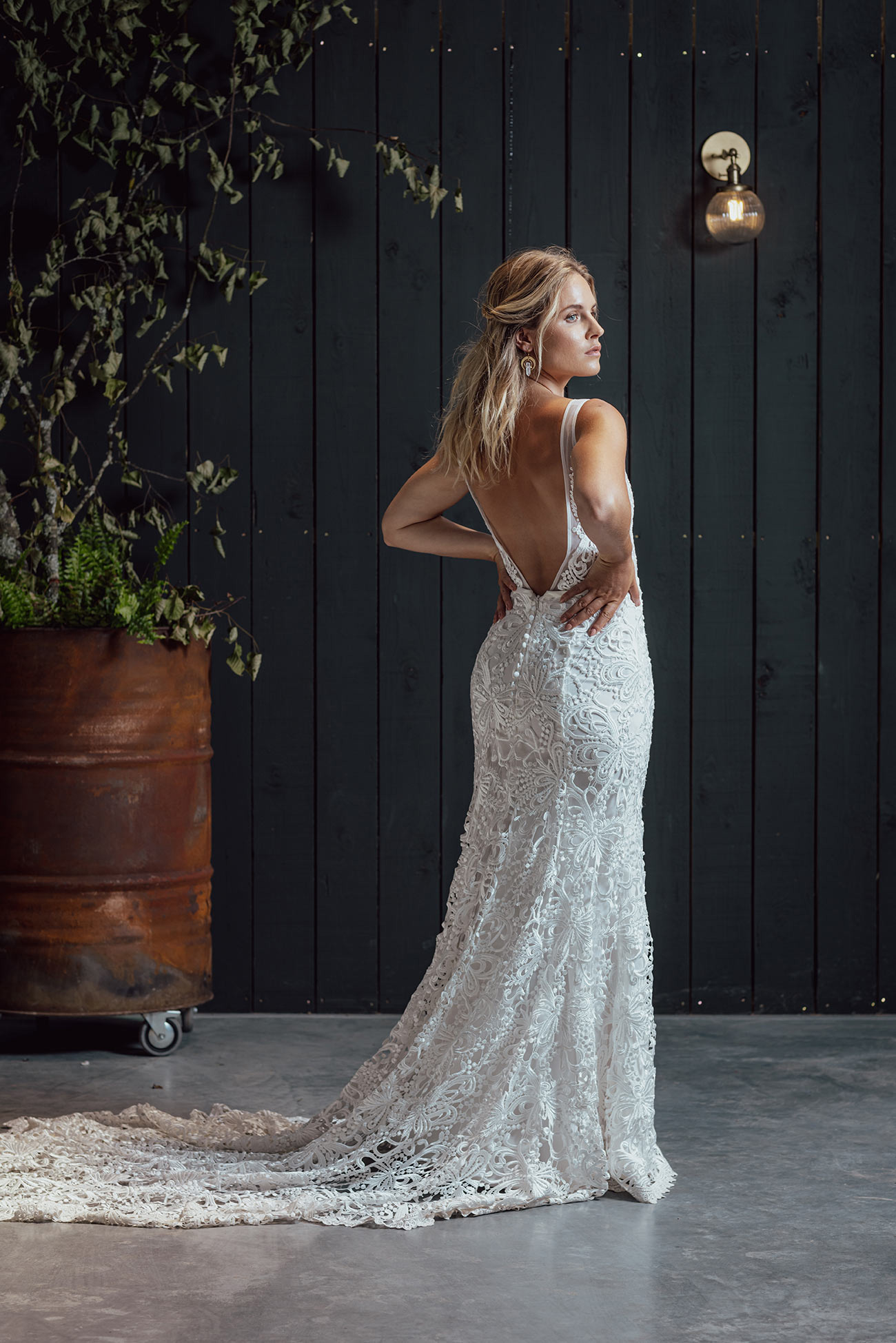 Dress Rebecca Ingram Bliss Bridal Gowns Earrings Wanderlust Necklaces Alex Monroe, Wanderlust