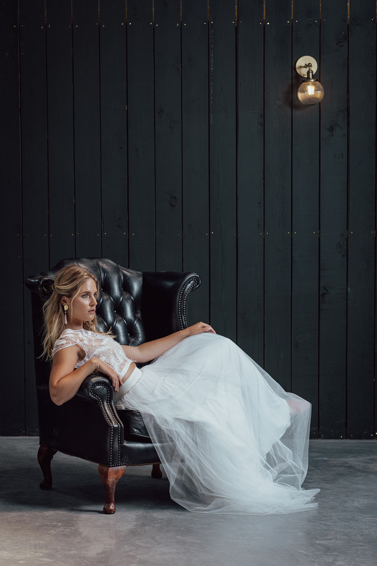 Top Ivory & Co. Bridal Gossip Skirt Kelsey Rose Bridal Gossip Earrings The Lucky Sixpence