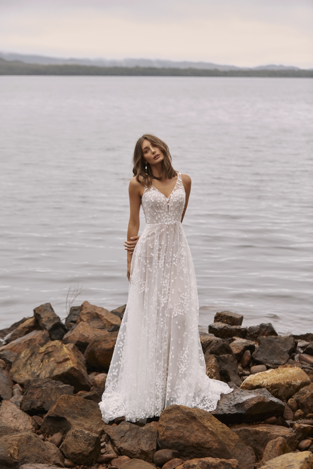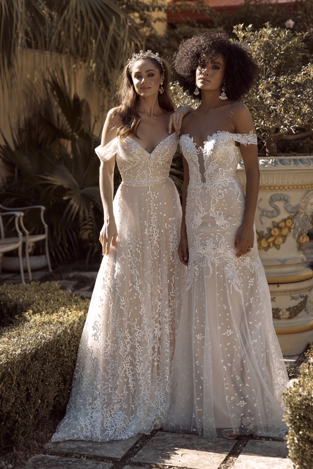 'Dancing between modern ingenuity and timeless sophistication, Madi Lane gowns tell the tale of 'girl meets dress' ' a timeless love story,' says the Australian designer. 'Each gown embodies a fierce femininity, fitting individual body as well as it does the individual spirit.' It's the attention to dazzling detail that we're especially drawn to, with delicate appliqués, eye-catching embellishments and exquisite floral and fauna laces combining to jaw-dropping effect.