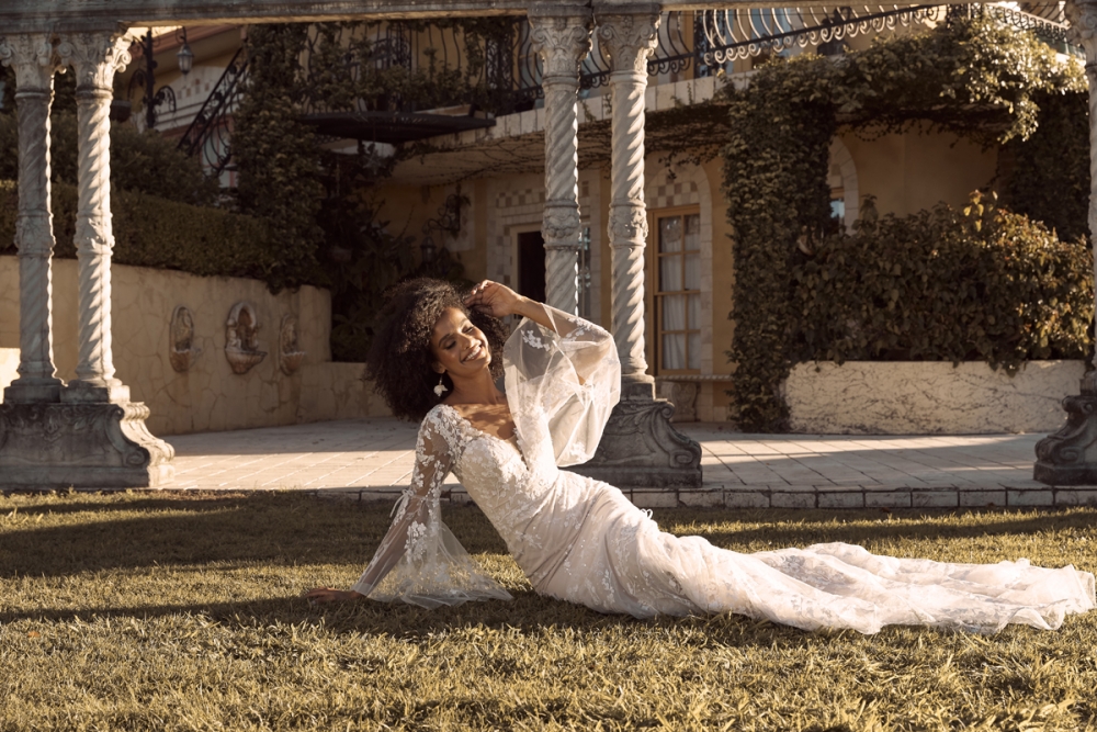 From figure-hugging sheaths in Chantilly lace and four-way stretch jersey with delicate spaghetti straps to spectacular A-lines with boned bodices, and demure charmeuse gowns with deep plunge necks and V-shaped illusion backs, each confection is a masterclass in couture design. And with features including detachable tulle and lace circular sleeves, sheer tulle overskirts with floating pearls, and sequin studded botanical lace, Madi Lane merges contemporary design with classic style for the most romantic and seductively feminine frocks that redefine the swoon factor.