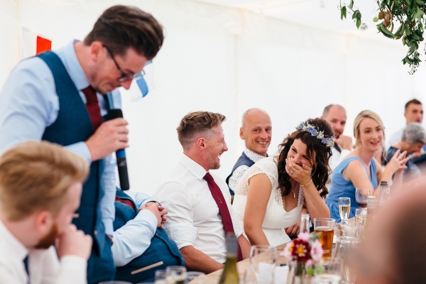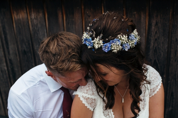Having legally tied the knot at Plymouth Registry Office two days previously, their wedding day was the culmination of a huge collaborative effort by family and friends. "We held the ceremony on hay bales under a driftwood arch that my dad and I put together, with my mum's beautiful home-grown flowers to decorate it," says Ellie, who also organised for the mobile bar to be serving drinks before the vows. "Having a G&T or a cold beer to drink during the ceremony was a big hit with our guests and added to the laid-back feel of the day!"