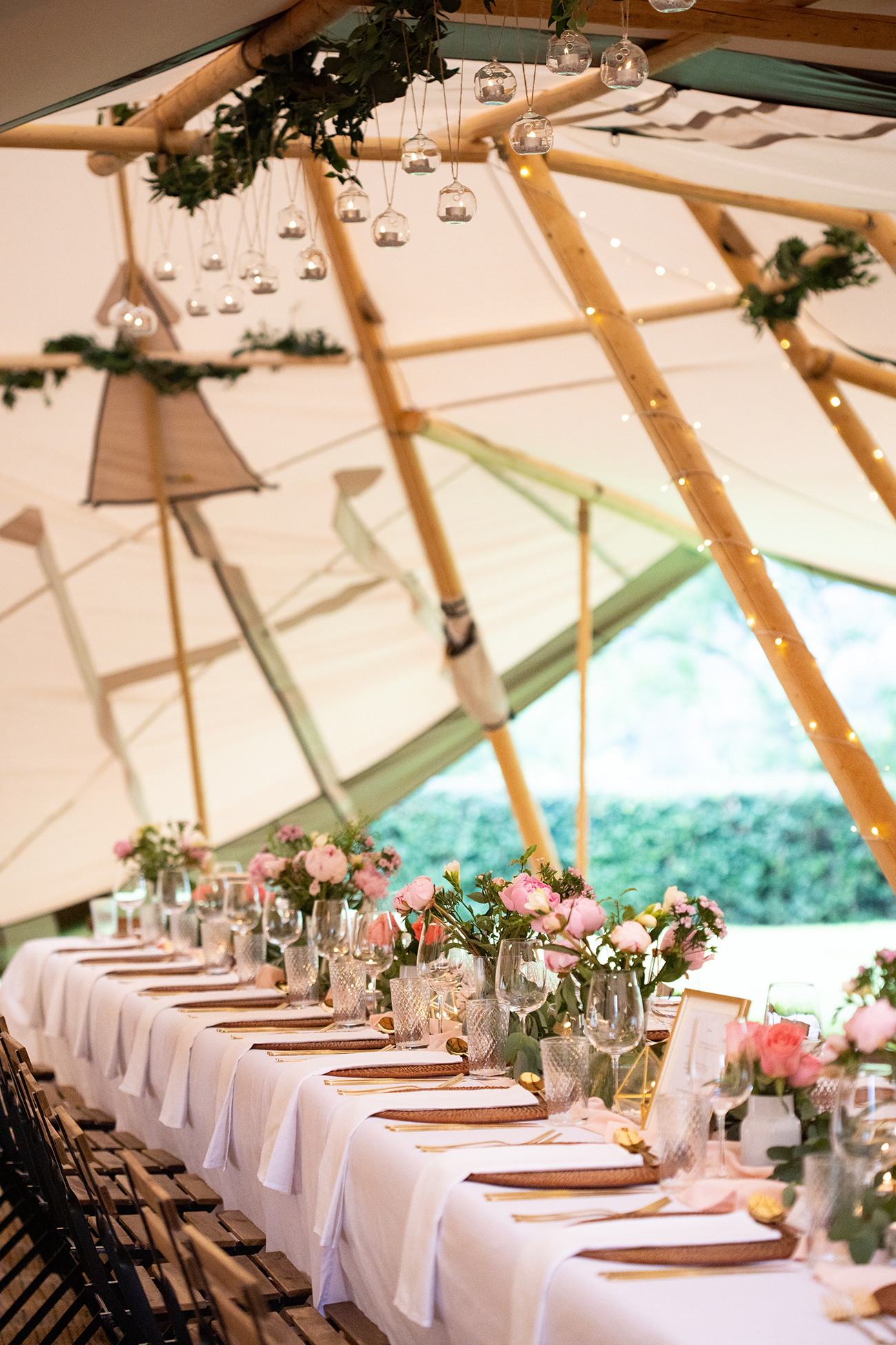 “Some of our favourite tipi styling has been DIY décor where the couples have created lots of things from scratch such as flowers, cakes, backdrops, table decoration, all with the help from friends and family, which can be very cost-effective,” she notes.