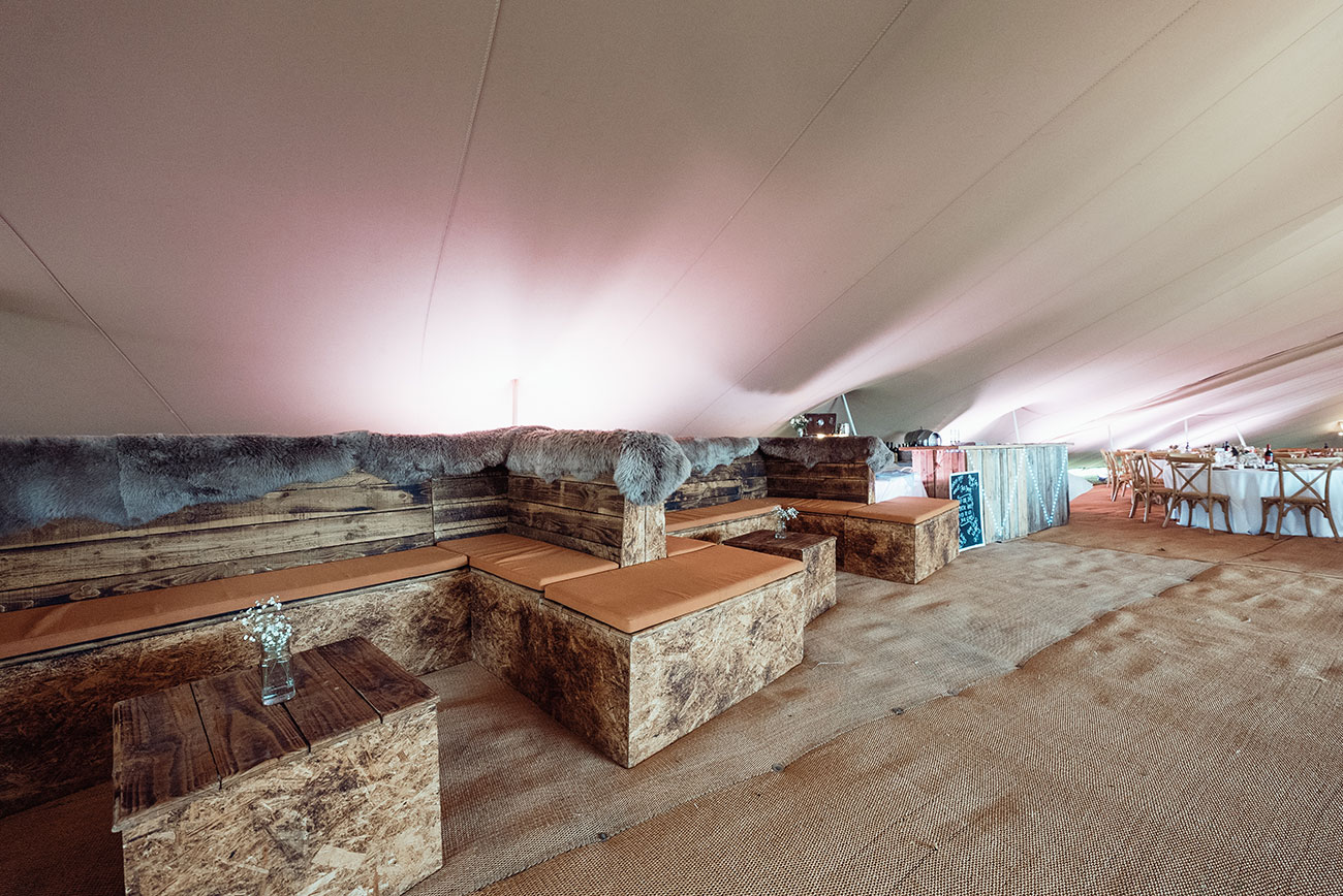 If you’re planning on celebrating into the small hours, it’s important to carefully consider your lighting throughout your tent. It might be string lights, large bulbs, fairy lights or festoon lights to create a magical feel as evening turns to nightfall.