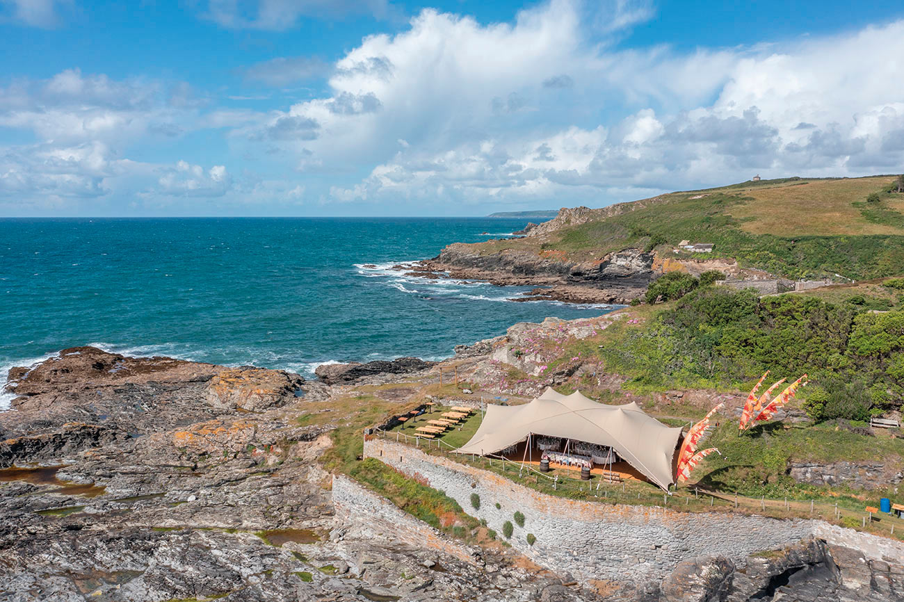 “We started our tipi hire business to enable people to entertain in meaningful outdoor spaces,” explains Charlotte. “There are not many places we can’t build a tipi, but some are easier than others. If we had to choose a favourite, it would be by the sea. And we don’t use machines to build them – they are all built by hand using ladders, ropes and old-fashioned people power!”
