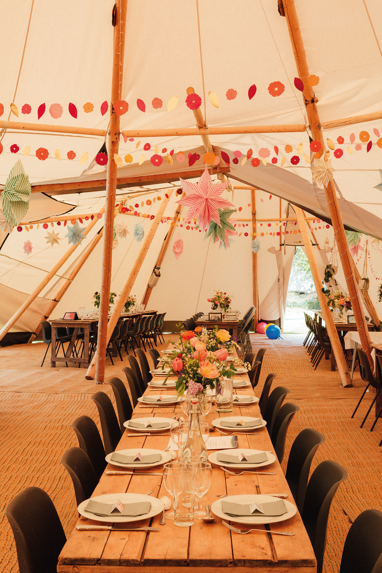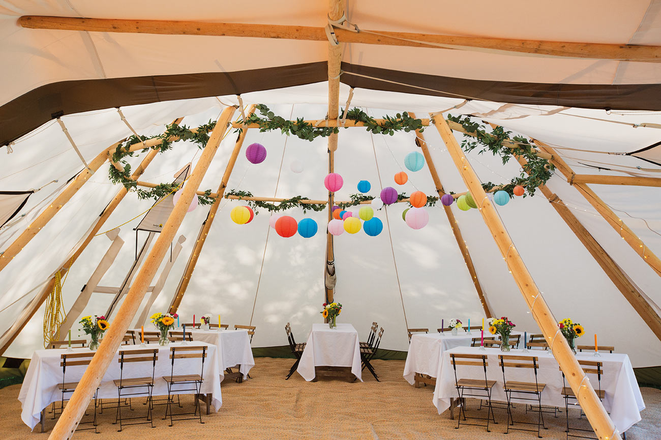 And what about dealing with the great British downpour? “The canvas is completely waterproof so will keep you dry!” says Charlotte. “On hot summer days, the ventilation system helps to keep everyone cool inside the tipi. The traditional smoke caps at the tipi peak are designed to be easily raised using a pulley system; this ventilation hole draws the warm air up to the top of the tipi and releases it. This keeps them a lot cooler than other marquee structures without the need for artificial air conditioning.”