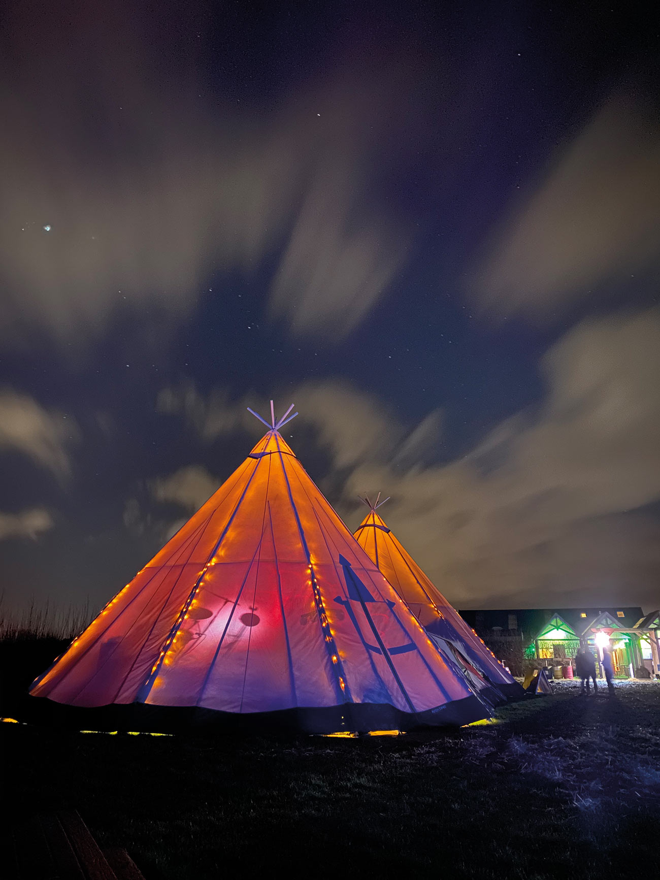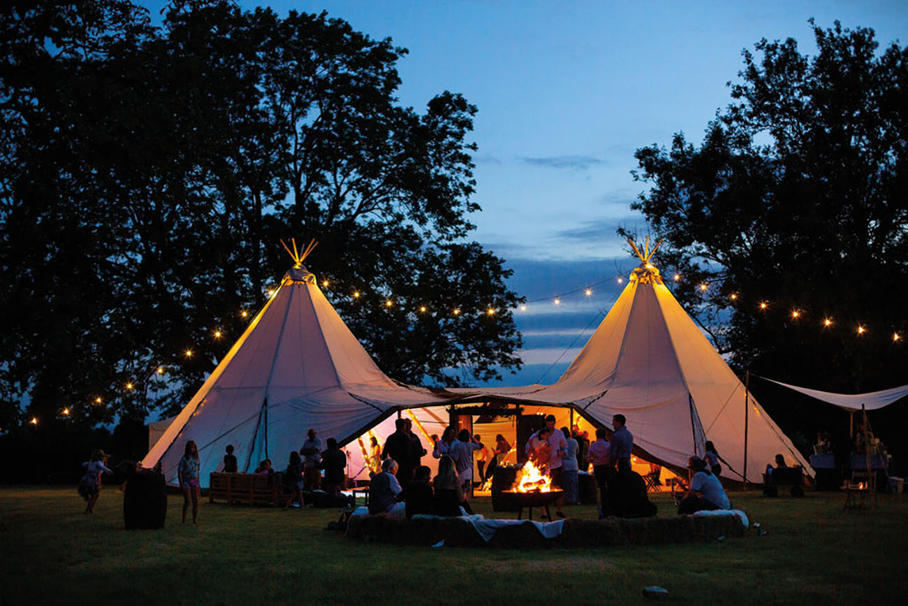 “Tipi Spaces are the only tipi hire company in the South-west who supply ivory-white canvas tipis, which means more natural daylight filters inside the tipis,” explains Charlotte of the instant benefits. “It also means artificial light is reflected more effectively, so you’ll need less lighting, which is better for your pocket and the environment.” Explore the myriad options for added ambience, from fairy lights to candles, lamps, chandeliers, lanterns and festoon lighting.