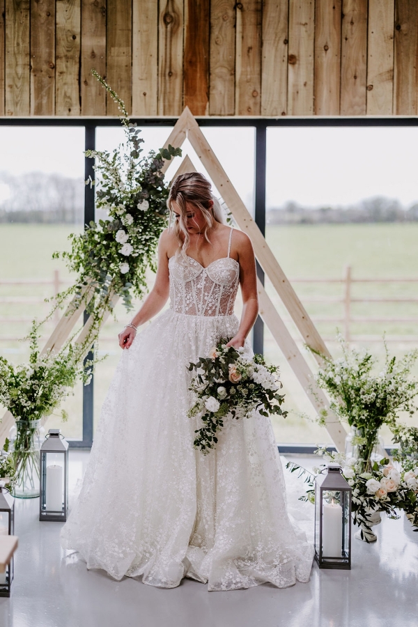 Appropriately entitled 'Back into the Light' by its organisers, this stunning location shoot blends two of Cornwall's natural landscapes with a venue featuring fresh, yet simple styling to achieve an effortlessly chic and beguilingly romantic look.