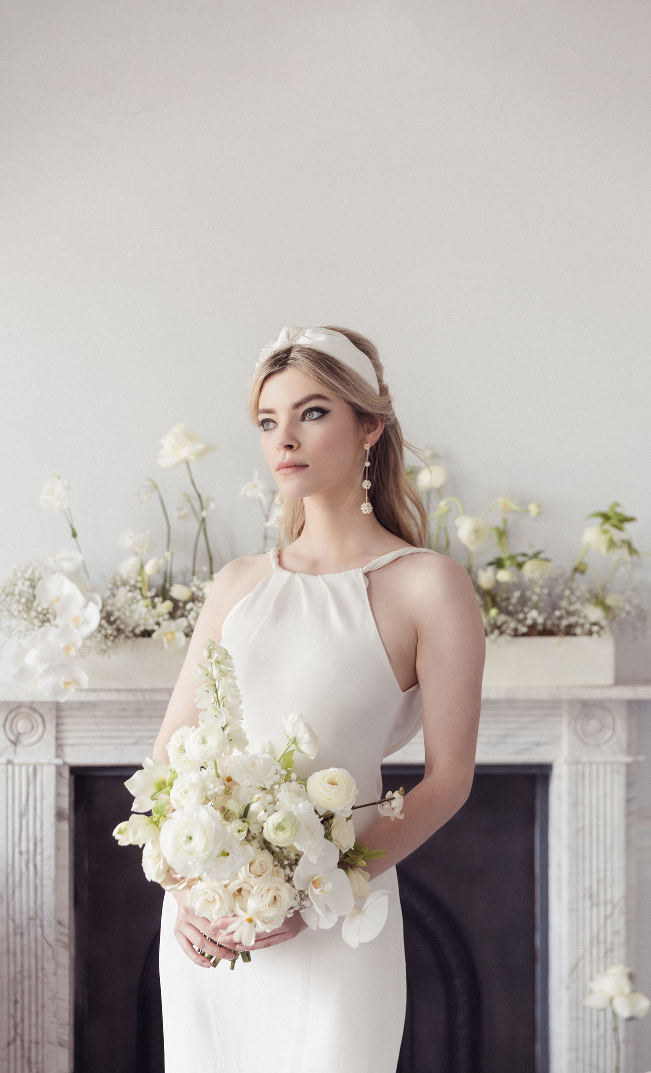 Charlie Brear St Ives Bridal Boutique Headband The Lucky Sixpence X Ness Bridal Earrings The Lucky Sixpence Flowers Perdie’s Flowers
