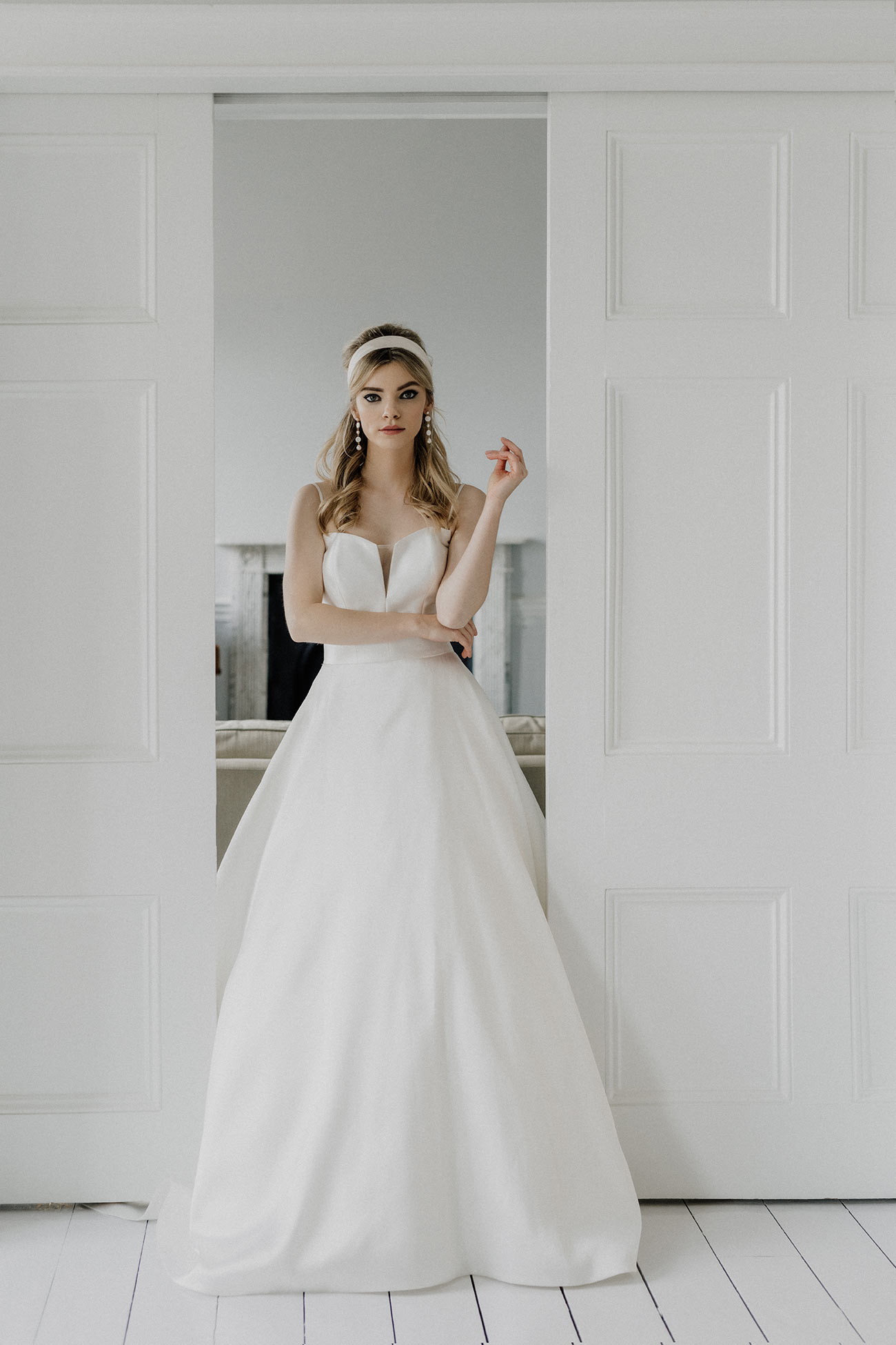Main image Charlie Brear St Ives Bridal Boutique Headband The Lucky Sixpence X Ness Bridal Earrings The Lucky Sixpence Flowers Perdie’s Flowers